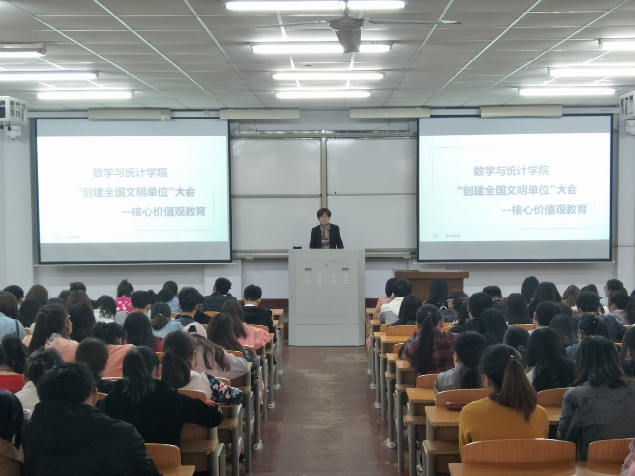 4月7日下午三点,金年会jinnianhuicom于一号楼106教室召开“创建全国文明单位”大会,院党总支副书记陈树艳以社会主义核心价值观为主题对各级辅导员、全体学生干部进行培训。
