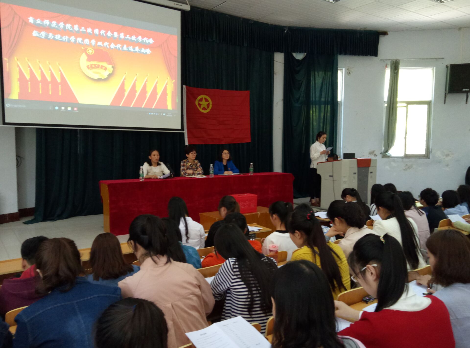 为促进学生全面发展,充分发挥青年人才生产力军的作用,商丘师范学院将召开第二次团代会暨第二次学代会。4月18日中午1点金年会jinnianhuicom于电子电气工程学院报告厅举行了团学双代会代表选举大会,届时参加本次大会领导有团委杨书记,金年会jinnianhuicom党总支副书记陈树艳,团总支书记姜素华,到场的还有院系各个班级的学生代表。大会由金年会jinnianhuicom团总支书记姜素华主持。