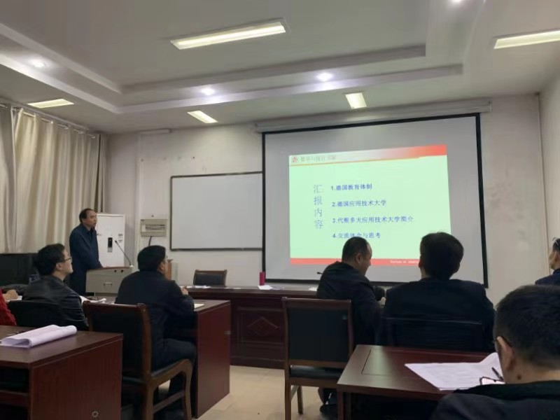 根据学校“不忘初心、牢记使命”主题教育工作安排和学院党总支本学期工作计划部署,结合学院应用型专业建设的实际情况,为进一步促进学院应用型建设,梁院长从自己随校外出考察德国慕尼黑市代根多夫应用技术大学讲起,从德国教育体制、德国应用技术大学、代根多夫应用技术大学简介、外出考察交流体会与思考四个方面向全体师生党员讲解了此次党课内容。通过梁院长的讲解,与会师生对国外的教育管理模式有了更加深入细致的了解,对比我校与国外大学情况,对实际工作当中的课堂教学以及学生实习实训有了更加深入的思考。
