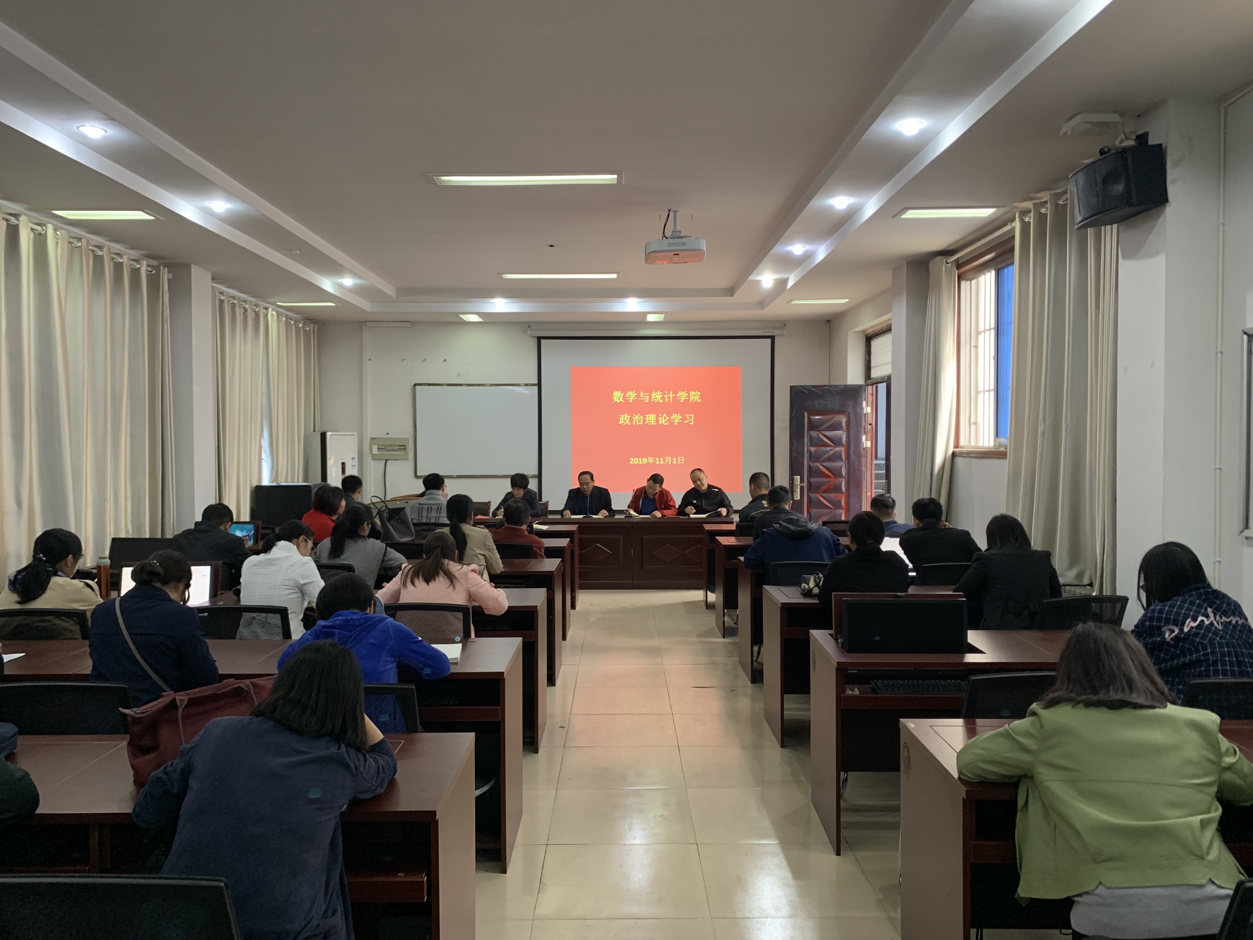 2019年11月1日,根据学校党委宣传部要求,金年会jinnianhuicom召开全体教职工会议,学习中国共产党第十九届中央委员会第四次全体会议公报。本次会议由梁洪亮院长主持,学院领导班子、全体教职工参加此次会议。
