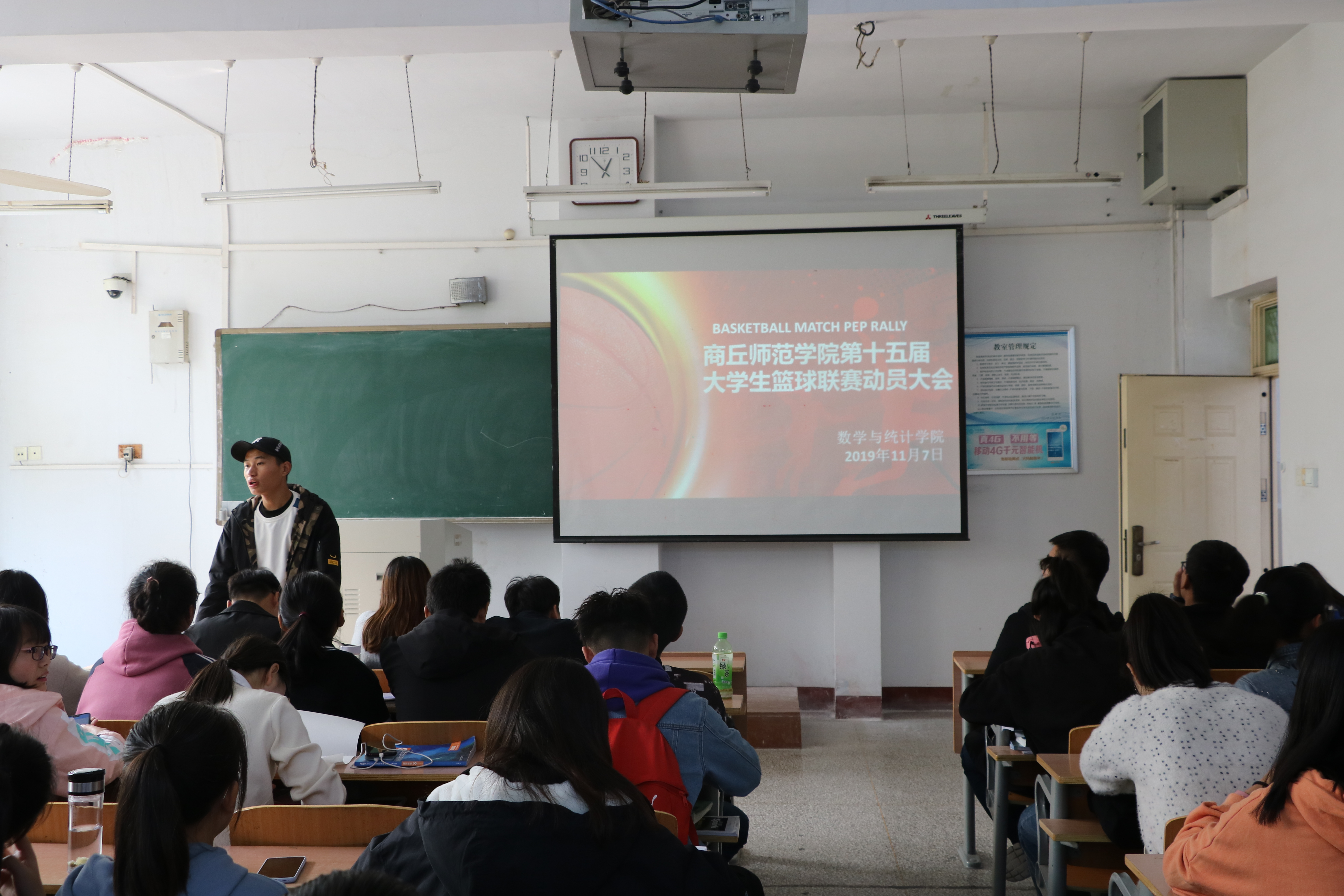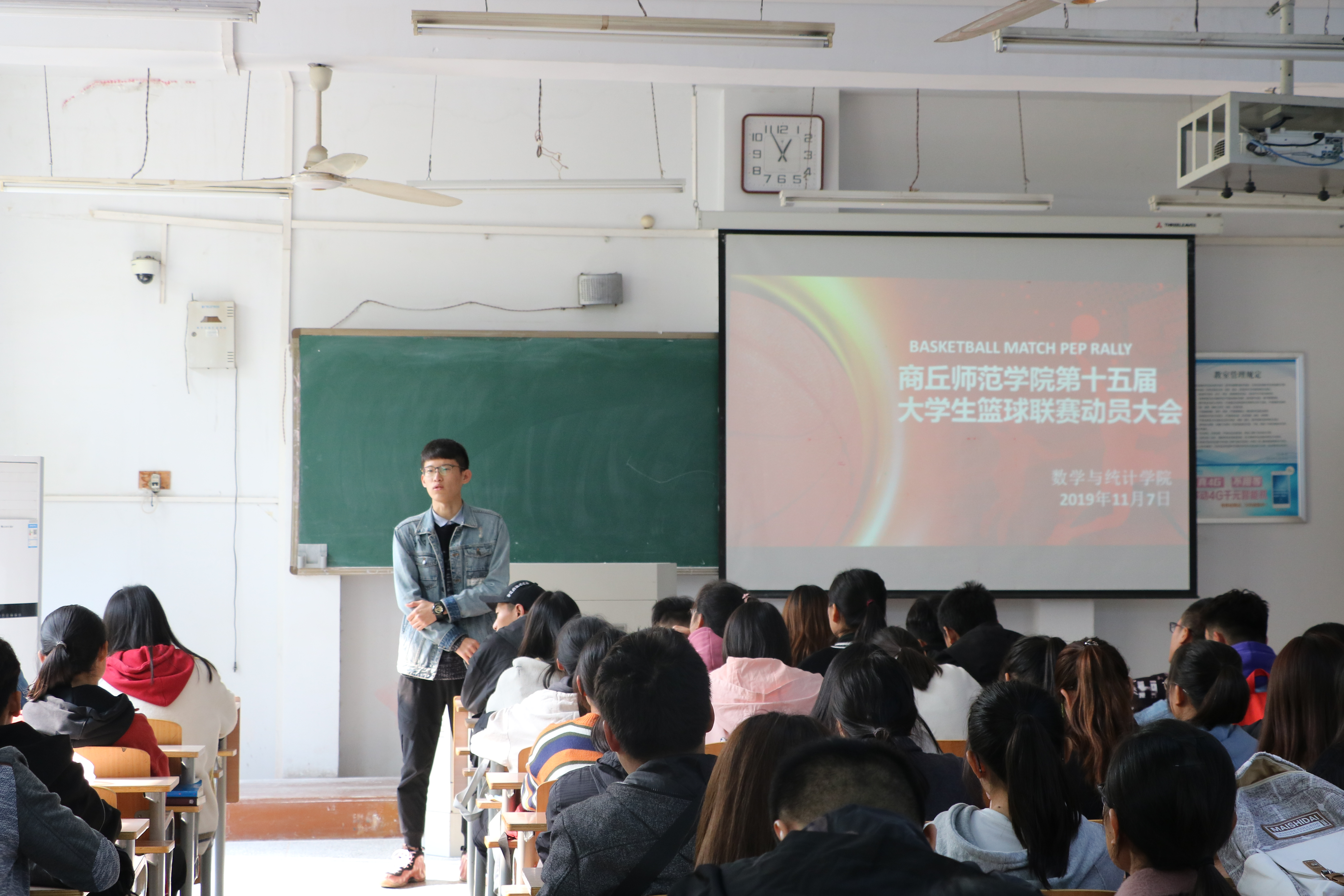 为进一步推动体育活动开展,确保金年会篮球赛顺利进行。11月7日下午一点,金年会jinnianhuicom在1号教学楼204室举行了“商丘师范学院第十五届大学生篮球联赛”动员大会。此次会议由学生会主席臧佳宝主持,全体参赛队员及学生会全体成员参与其中。
