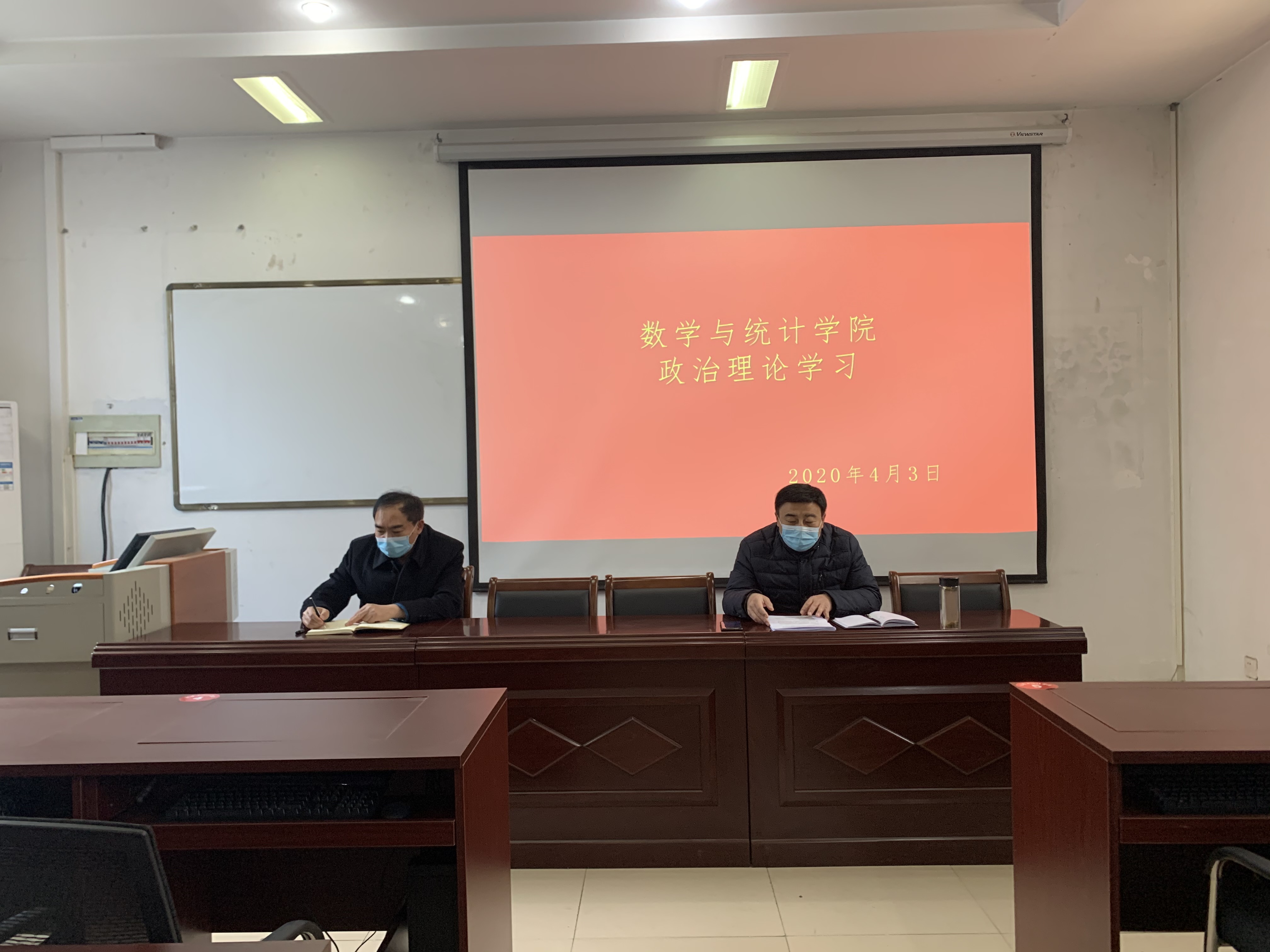 2020年4月3日下午,金年会jinnianhuicom在数学楼会议室召开政治理论学习会议,学院领导班子、全体行政人员参加此次会议,会议由党总支书记陈东主持。