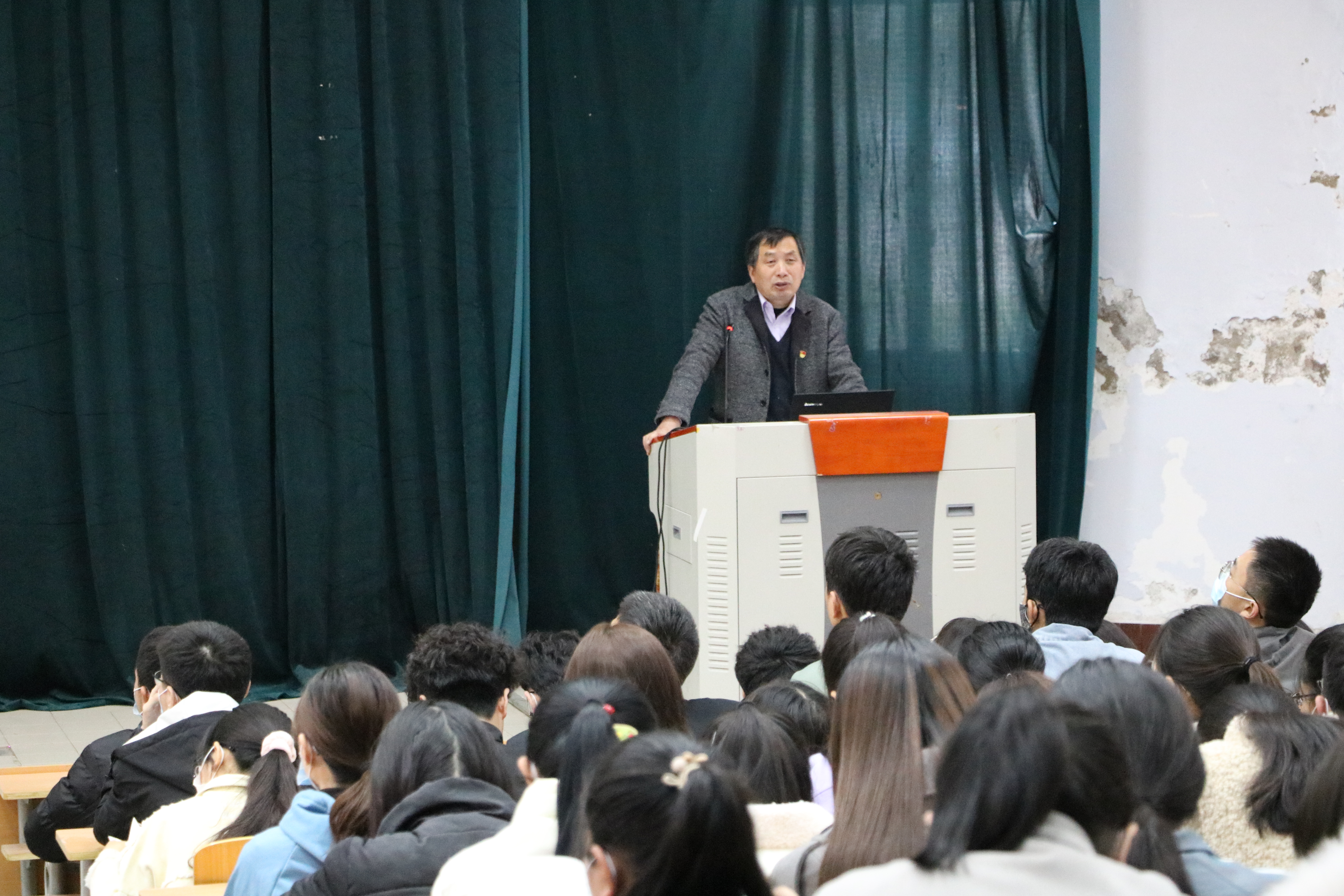 龚教授以《遵守教师职业行为准则,做合格人民教师》为主题,从“道德、职业道德、教师职业道德”和“新时代中小学教师职业行为十项准则 ”两个方面展开授课,以通俗易懂的语言向同学们讲解了道德教育知识,强调了同学们应加强自身素质修养,树立正确的教育观。接着,龚教授结合具体案例强调了十项准则的重要性,明确指出教育具有鲜明的政治属性,中小学教师必须具有坚定的政治方向和良好的道德情操。龚老师的讲座幽默风趣,博得了同学们热烈的掌声。