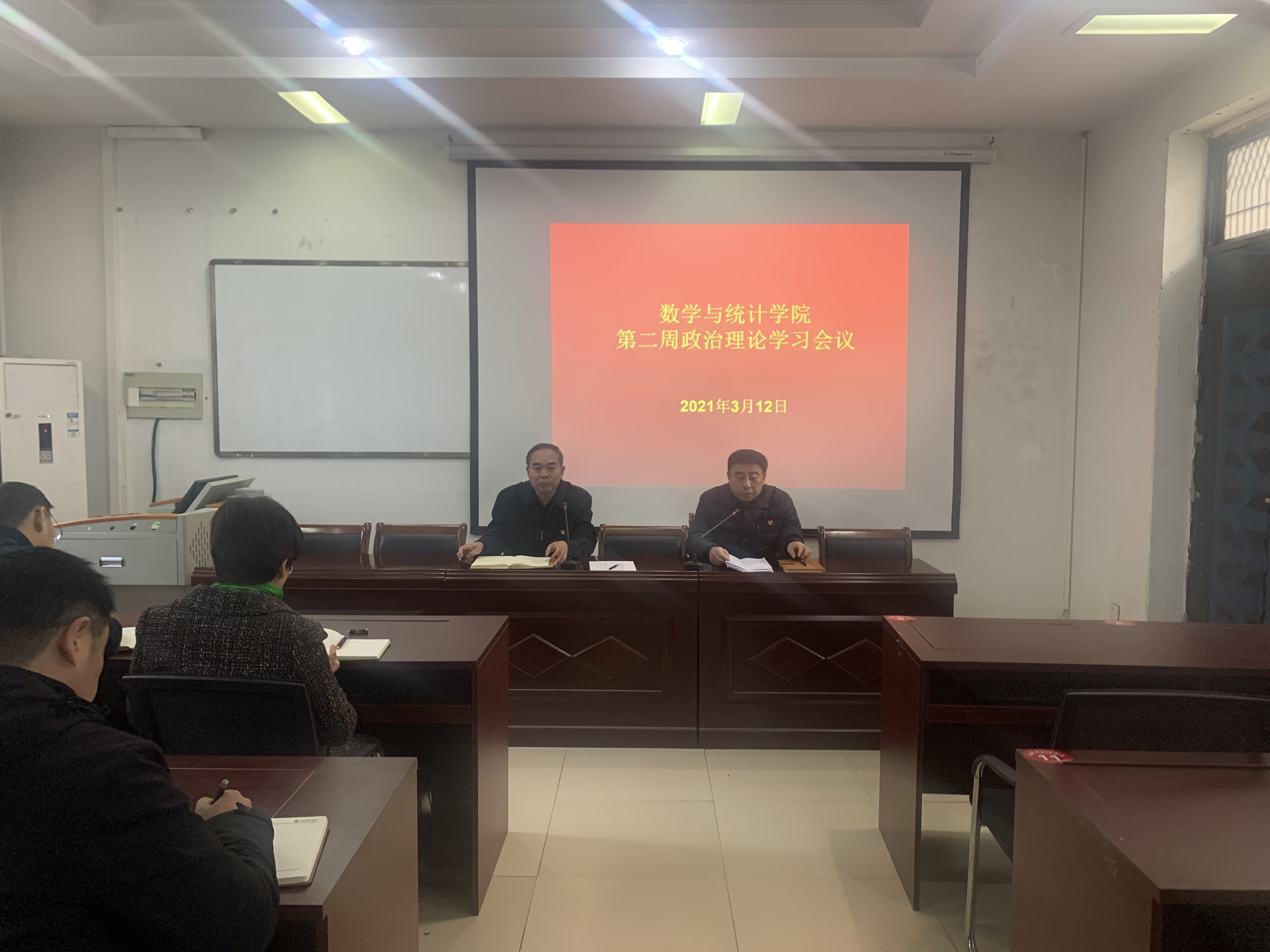 2021年3月12日,金年会jinnianhuicom在数学楼综合会议室召开第二周政治理论学习会议,学院领导班子、全体教职工参加此次会议,会议由院长梁洪亮主持。