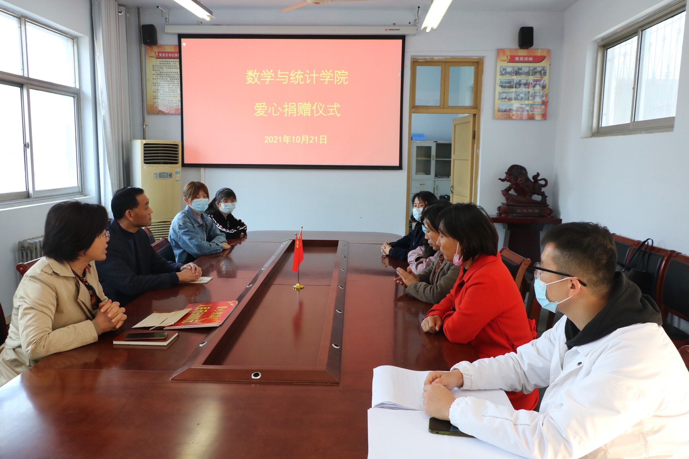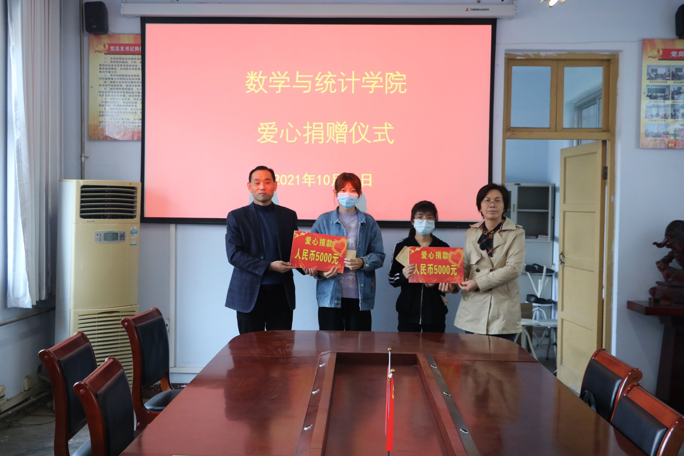 为进一步弘扬无私奉献和关爱互助精神,金年会jinnianhuicom于2021年10月21日中午在院系办公楼204举行了“爱心捐赠”仪式。本次仪式由金年会jinnianhuicom党委书记孟学超,党委副书记陈树艳,团总支书记姜素华、学工办主任李昊阳、各年级辅导员和受捐赠两名同学参加。