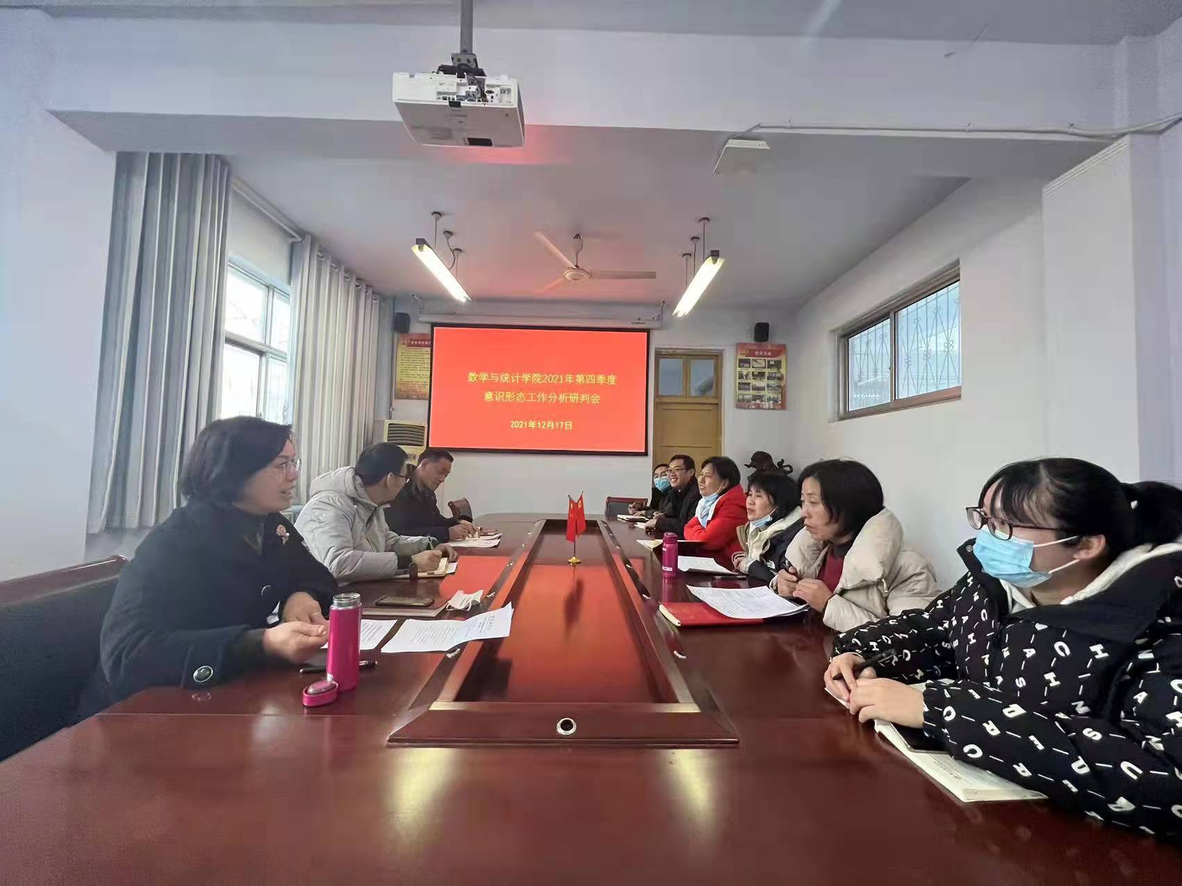 2021年12月17日下午,金年会jinnianhuicom在数学楼204会议室召开2021年第四季度意识形态工作分析研判会,学院党委委员、党支部书记、全体辅导员参加了此次会议,会议由党委书记孟学超主持。