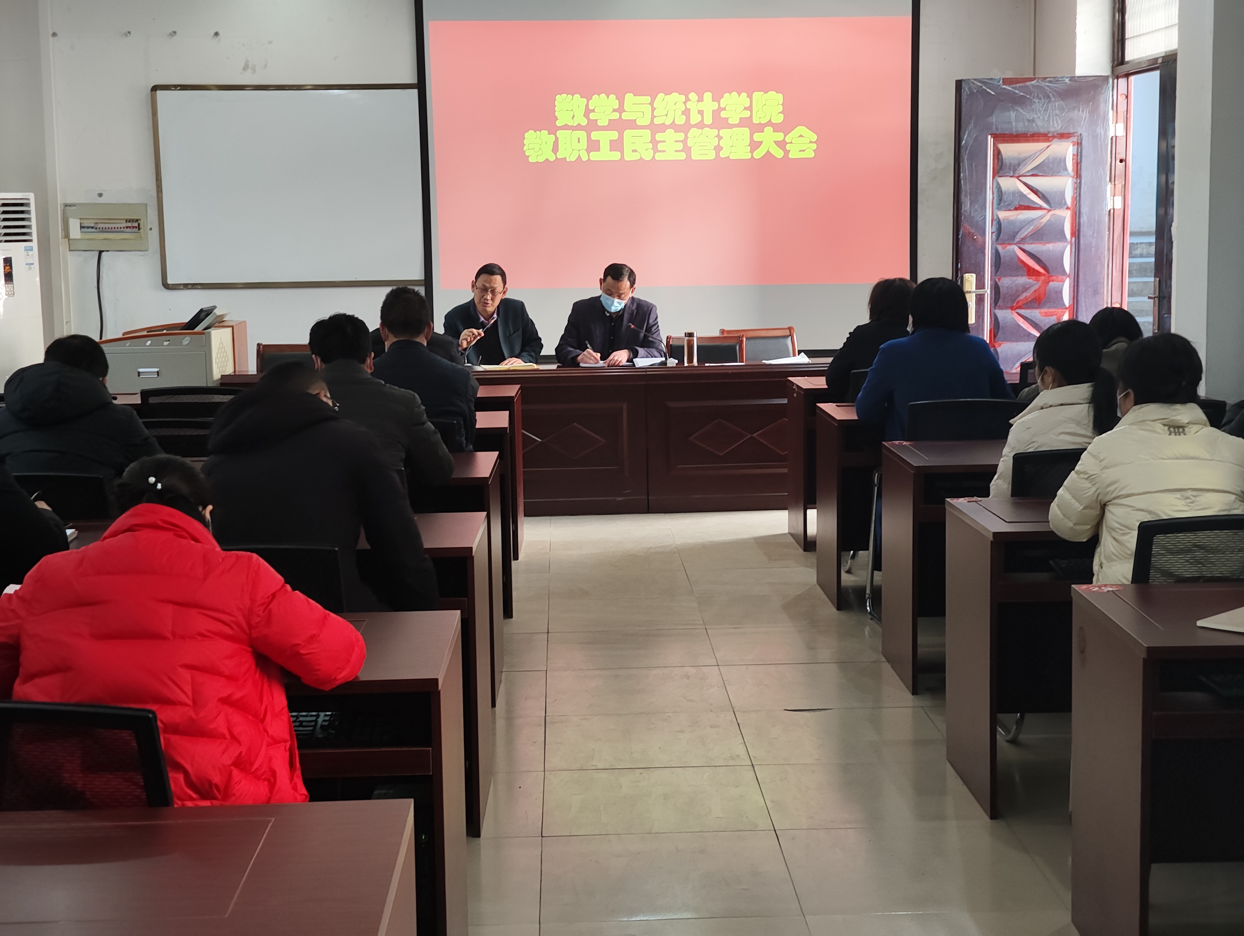 2021年12月17日,金年会jinnianhuicom在数学楼208会议室召开了教职工民主管理大会,学院领导班子、全体教职工参加了会议。会议由党委书记孟学超主持。