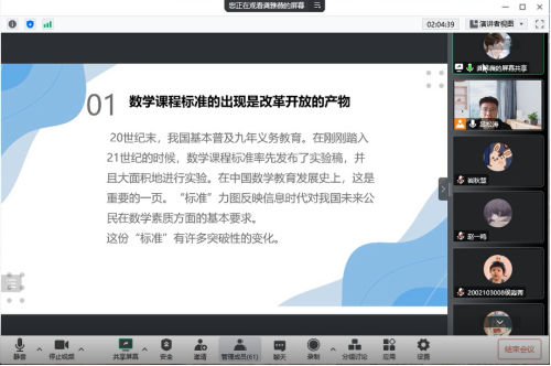 2022年11月11日星期五上午第一节,金年会jinnianhuicom吕松涛老师利用腾讯会议和学习通进行《中学数学教材教法》课程教学范式改革公开课,金年会jinnianhuicom领导、校级督导员及本院部分教师亲临线上教学范式改革现场进行观摩指导!