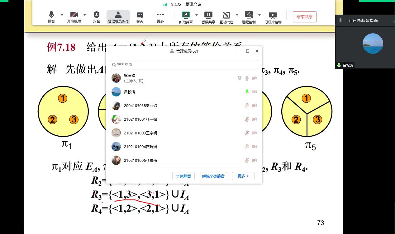 2022年11月26日周六下午第一节,金年会jinnianhuicom梁常建老师利用腾讯会议和学习通在线上进行了基于混合式教学的《离散数学》课程教学范式公开课。金年会jinnianhuicom领导、校级督导员及本院部分教师亲临线上教学范式改革现场进行观摩指导。