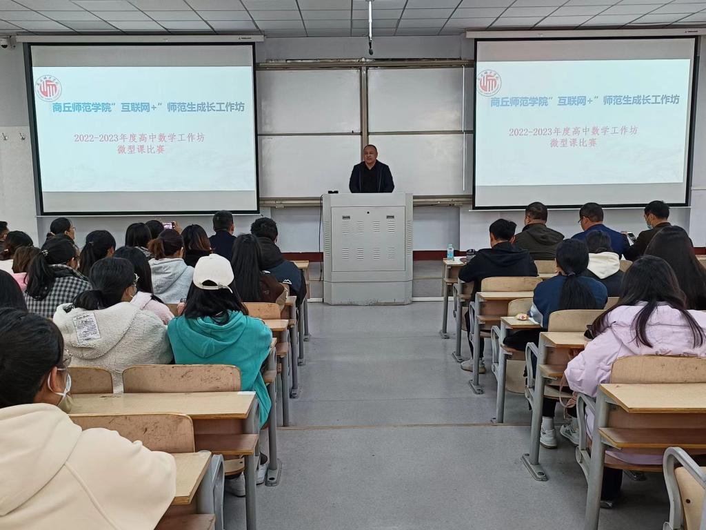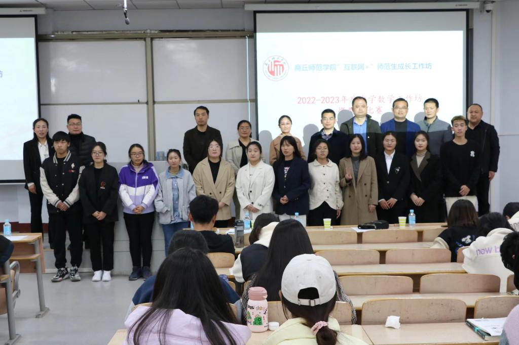 为进一步增强师范生的教学技能,全面提升师范生的专业素养,金年会jinnianhuicom于3月25日下午在睢阳校区1号教学楼106教室举办了“互联网+”中学数学工作坊微型课比赛。商丘市8名一线名师参与本次活动并担任评委,金年会jinnianhuicom副院长刘磊及2020级师范专业全体学生共同参与,大赛由班主任姜素华主持。