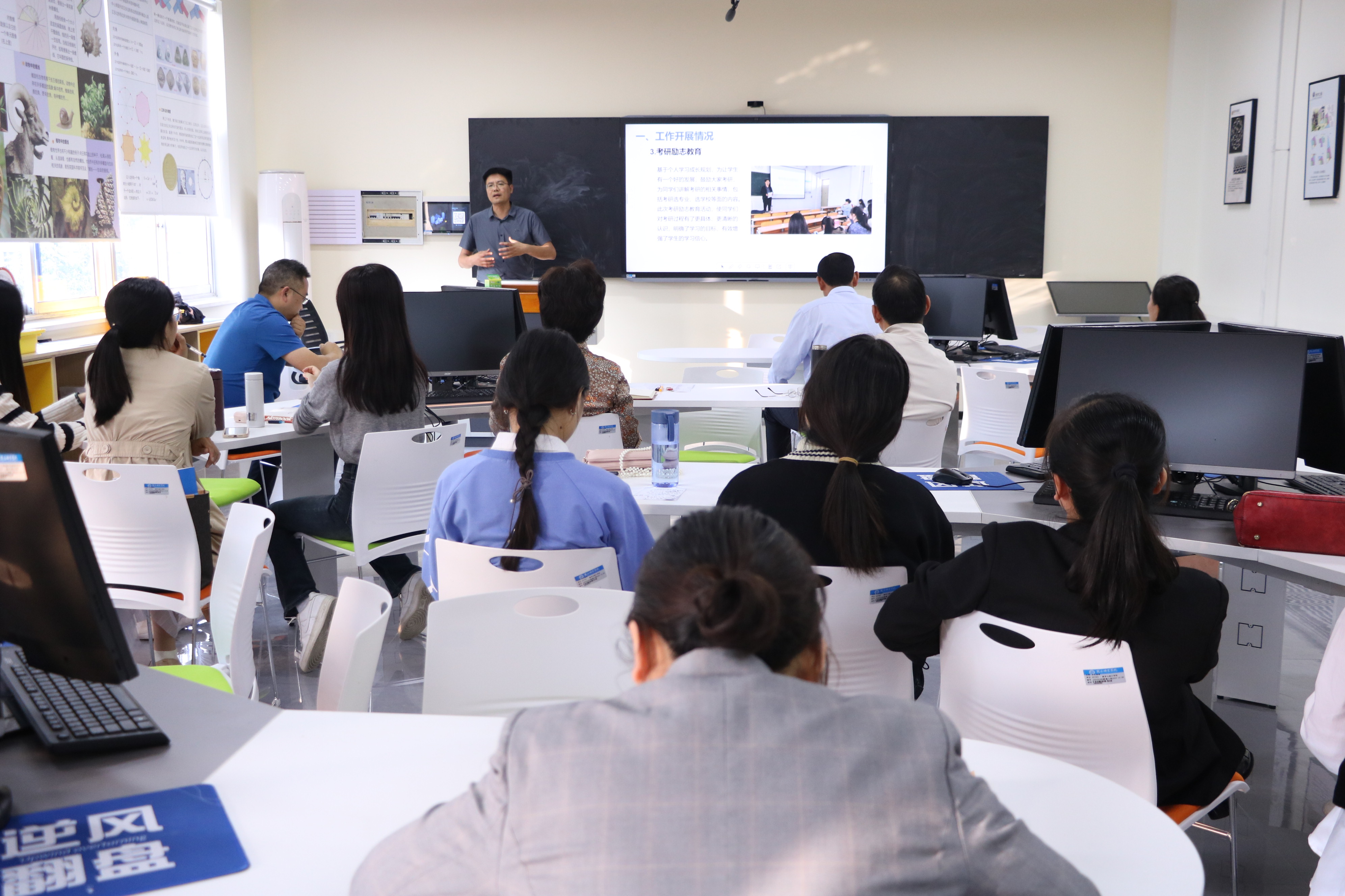 首先,班主任围绕班级学风建设工作开展情况,取得成效以及下一步工作重心三方面进行汇报,总结学风建设工作成果。各班班主任介绍了所带班级近期整体学习和生活情况,分析了班级上学期期末考试成绩,并阐述了目前已采取的措施以及取得的成效。同时以“启智润心,因材施教”、“学有所得,学有所成”等主题班会为切入点,找出学生在学习生活中存在的一些问题,并引导他们制定出下一步学习计划。