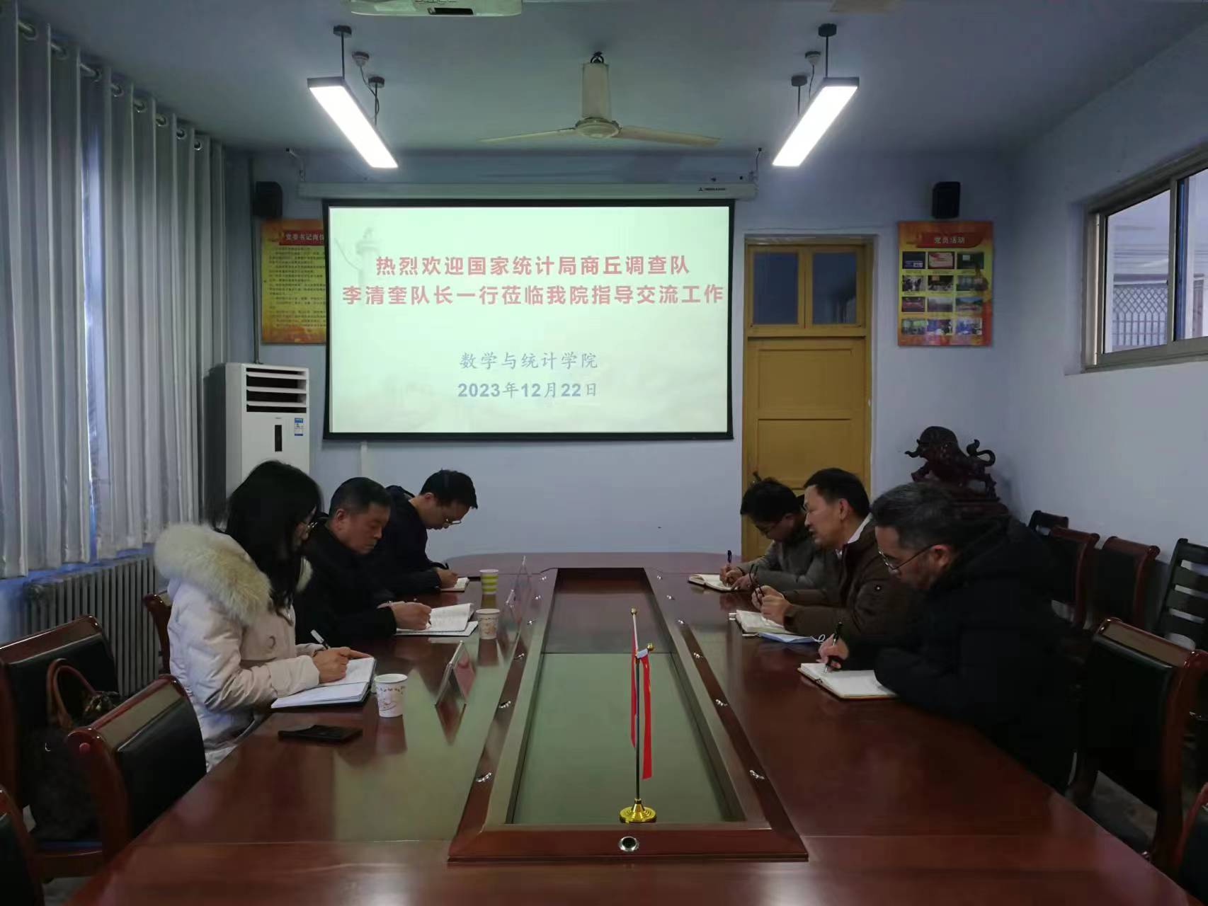 12月22日上午,国家统计局商丘调查队党组书记(队长)李清奎、科长秦中、副科长沈文亚一行到金年会jinnianhuicom就双方合作事宜进行交流考察,金年会jinnianhuicom院长张斐然、副院长任磊、办公室主任张钦富参加了座谈。