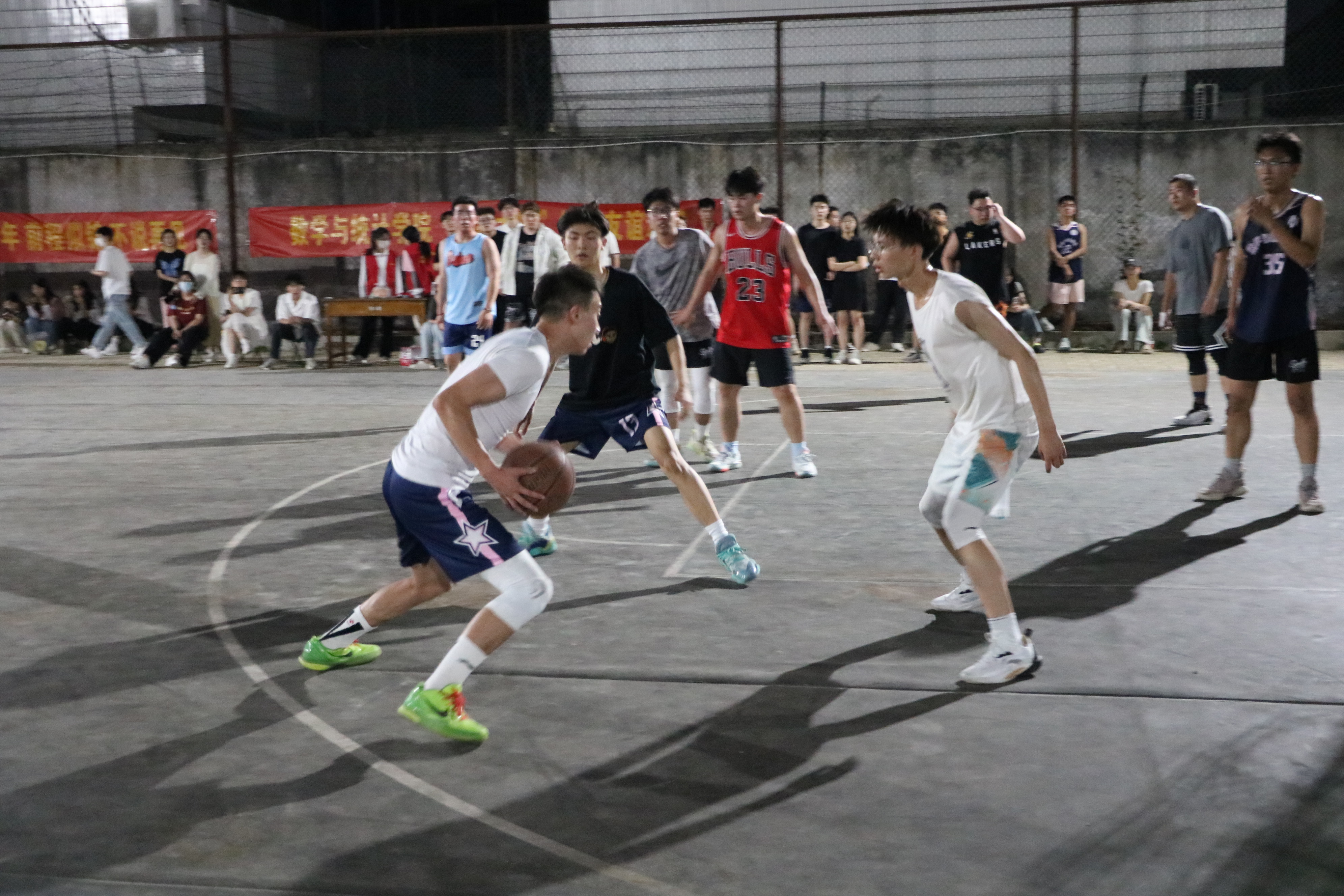 为了丰富校园文化生活,增进毕业生与在校生之间的交流与团结,金年会jinnianhuicom于5月18日晚上7点30分在睢阳校区篮球场举行了“送别大四”篮球友谊赛,学院各年级篮球爱好者参加了比赛。