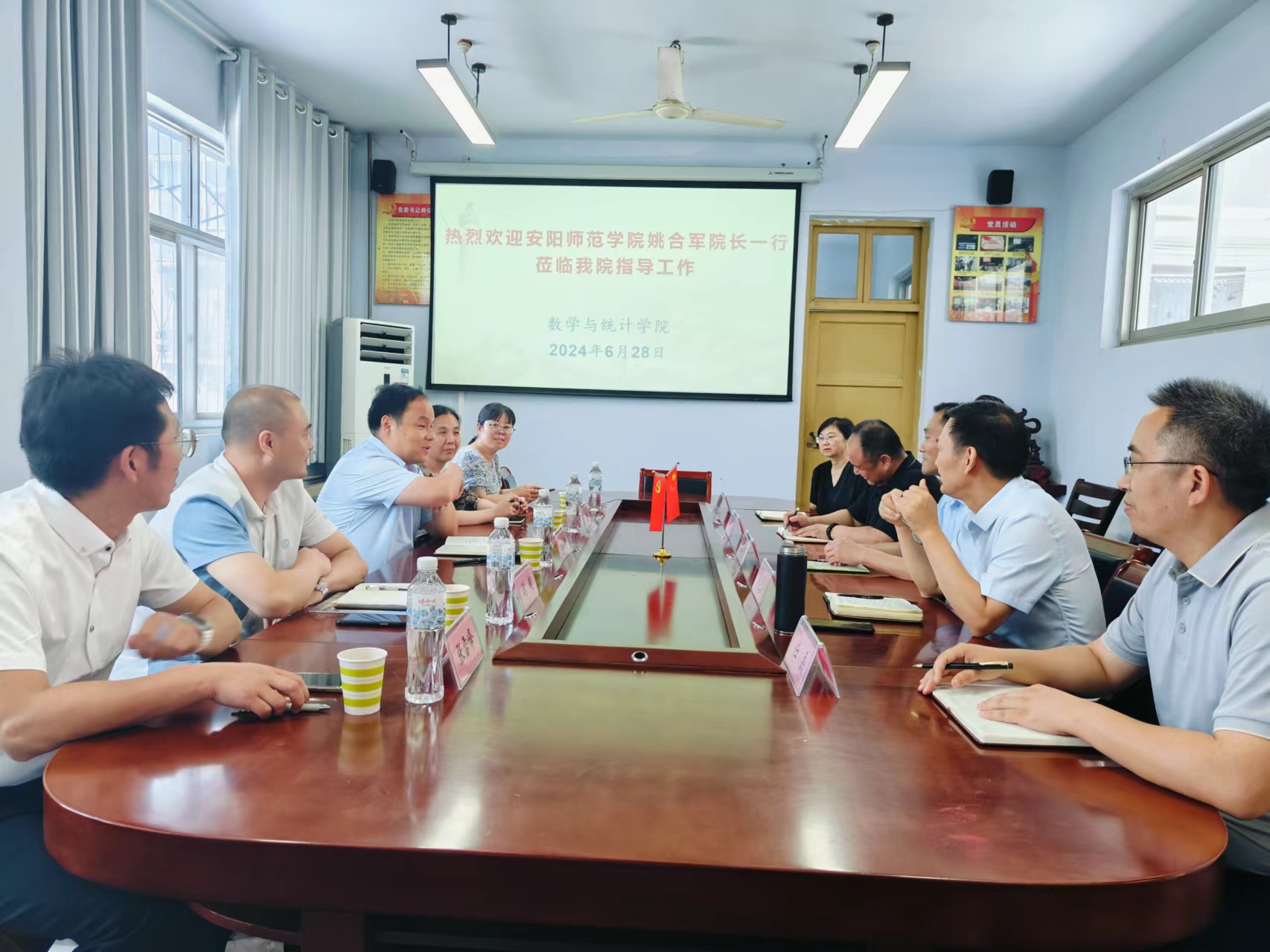 6月28日下午,安阳师范学院金年会jinnianhuicom姚合军院长一行5人来金年会进行调研交流。学院党政班子成员及相关负责人热情接待了姚合军一行,院长张斐然主持会议。
