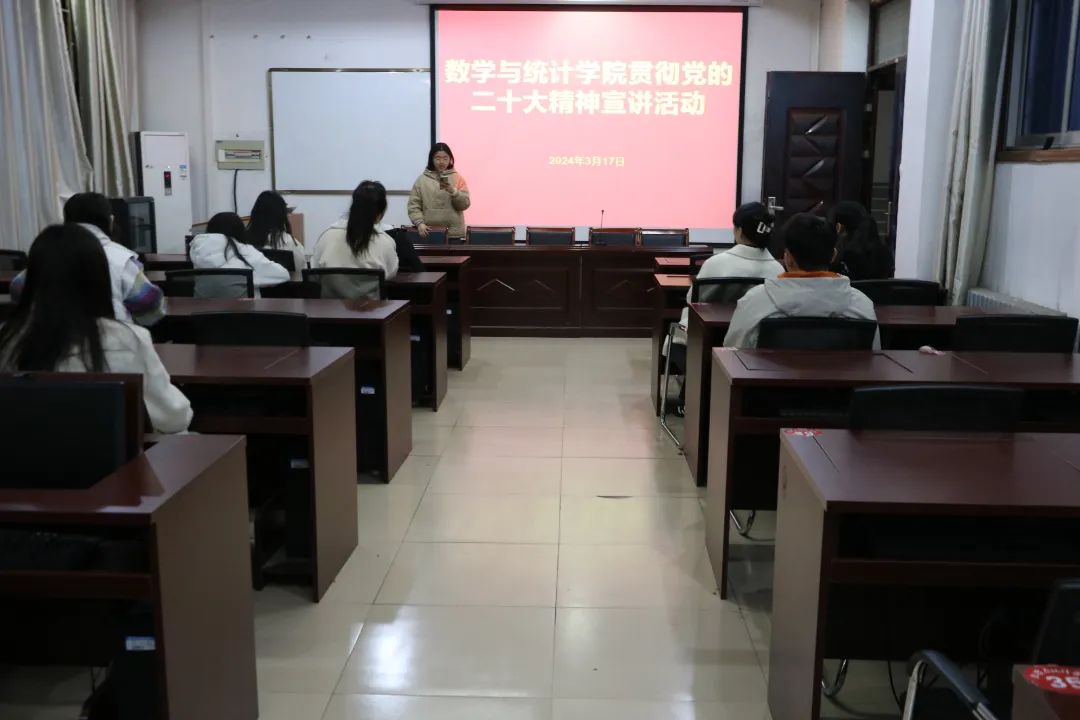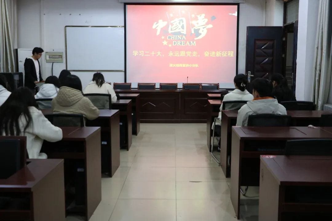 为深入学习贯彻党的二十大精神和习近平总书记在陕西延安和河南安阳考察时的重要讲话精神,进一步引导广大青年自觉把思想和行动统一到党的二十大精神上来,金年会jinnianhuicom于3月17日晚上7点在办公楼208会议室开展学习贯彻党的二十大精神专题宣讲活动。本次活动由裴璐瑶主持,金年会jinnianhuicom宣讲团成员参加此次活动。