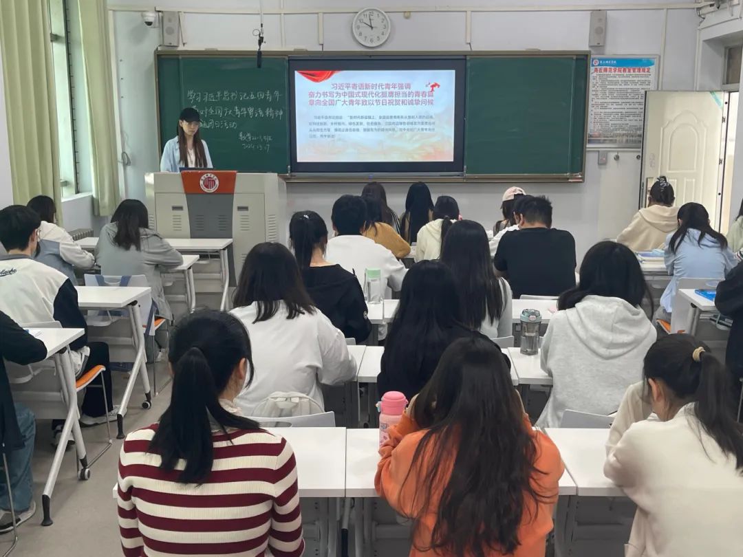 为学习宣传贯彻习近平总书记重要寄语精神,金年会jinnianhuicom于5月8日组织2022级和2023级团支部开展“学习习近平总书记五四青年节对全国广大青年寄语精神”主题团日活动。