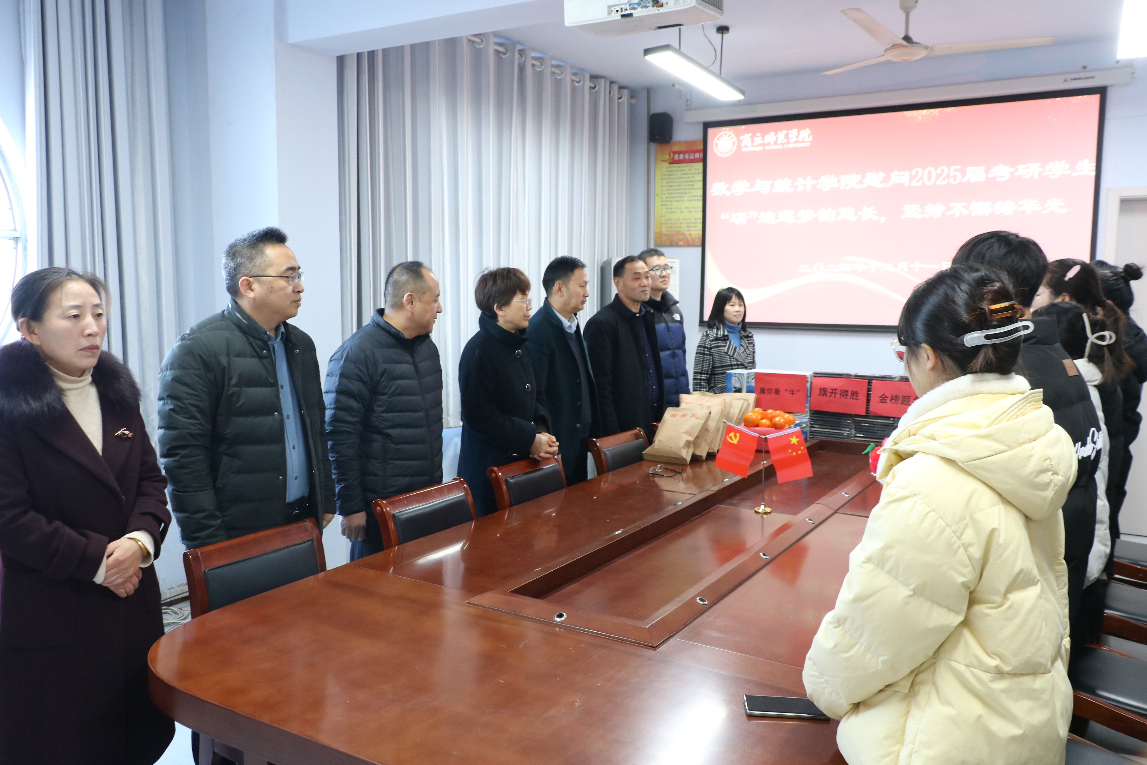 在2025年全国硕士研究生招生考试即将来临之际,为缓解考研学生备考压力,坚定考研信心,金年会jinnianhuicom于12月11日上午在办公楼204会议室举行了“‘研’途逐梦,砥砺前行”慰问2025届考研学生活动。学院领导班子、全体辅导员及2025届考研学生代表参加本次活动。