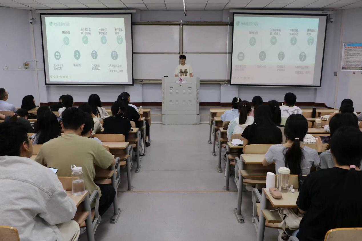 为帮助学生明确考研方向,树立考研信心,金年会jinnianhuicom于2025年5月16日下午4点在睢阳校区1号教学楼107教室开展了2025届考研经验分享交流会。本次大会由金年会jinnianhuicom副院长任磊主持,院长张斐然、副院长刘磊、21级辅导员黄丽芝以及22级、23级学生代表参加。