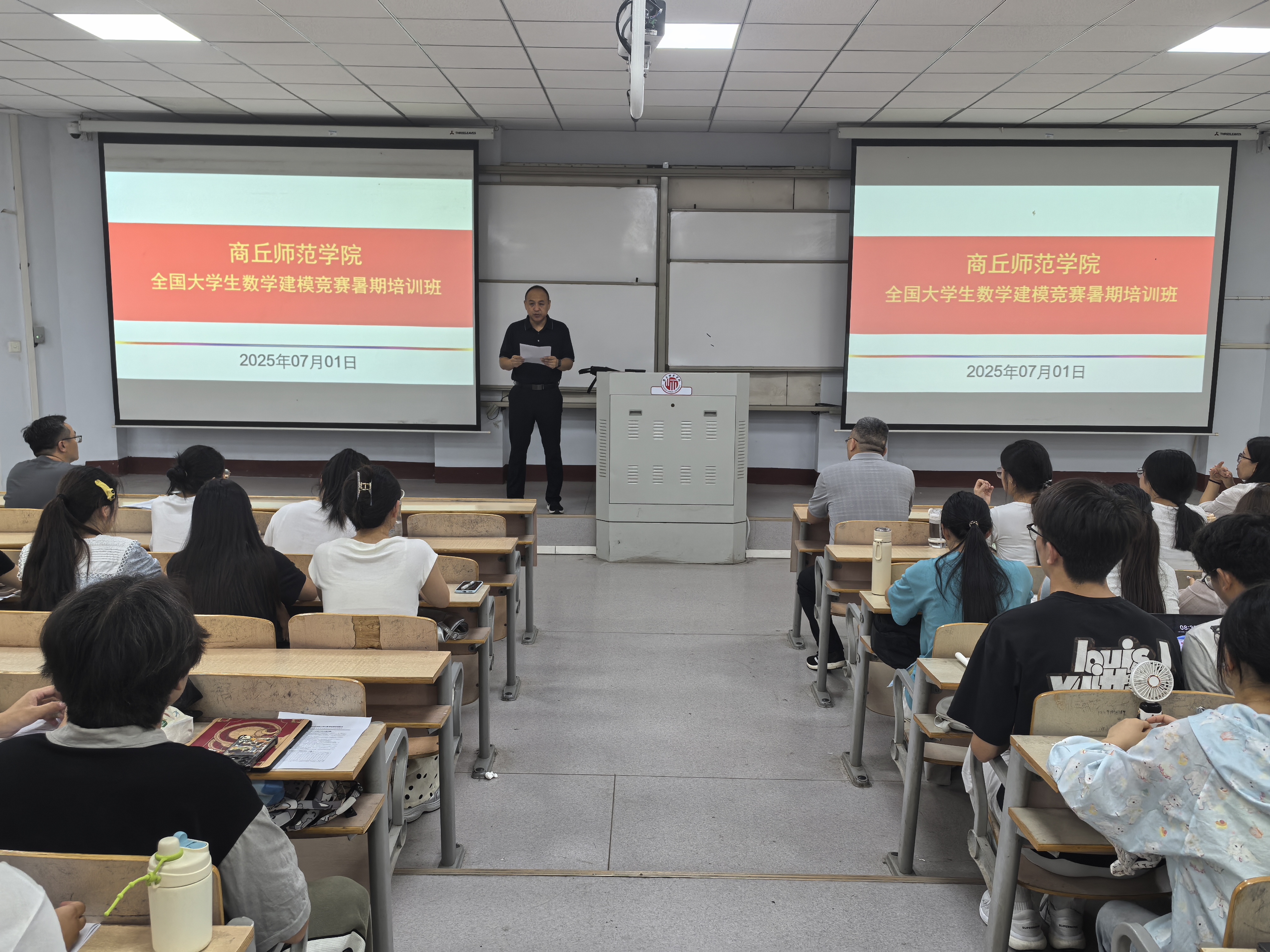 为提升学生运用数学方法与计算机技术解决实际问题的能力,全力备战2025年全国大学生数学建模竞赛,在学校的统筹领导及教务处、各学院的协同支持下,金年会jinnianhuicom经前期选拔与充分筹备,组织指导教师有序开展数学建模竞赛暑期培训。7月1日上午8时,培训开班仪式在睢阳校区一号教学楼307教室举行。学院副院长刘磊、任磊,数学建模指导组全体教师及150余名参训学生共同参加了此次活动。
