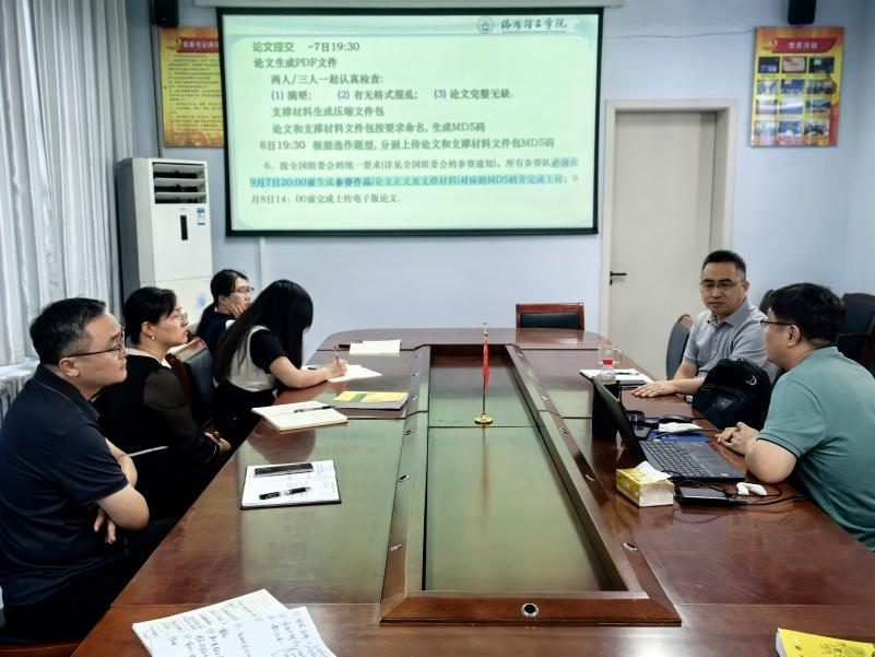 报告中,周家全围绕建模组队的分工与合作、国赛赛题特点与选题策略、国赛论文写作要点及注意事项、指导教师职责等展开阐述。他结合自身培训经历与详实的历年数据,讲解了组员分工逻辑、小组选题方法、论文写作重点,以及指导教师赛前引导学生思考的路径。会后交流环节,建模团队指导教师针对数学建模培训重点与注意事项等进行了提问,周家全给出了细致的解答。