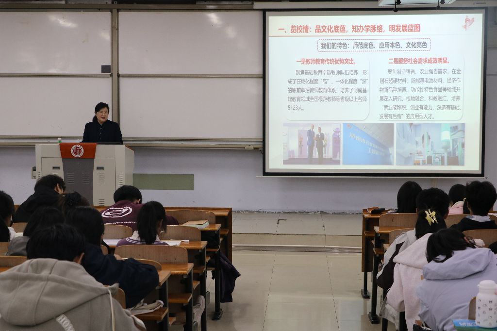 韩桂玲首先聚焦“览校情”,系统介绍了学校的办学历史、校园文化、师资力量与校园环境,深刻阐释了学校的文化底蕴与发展蓝图,有效增强了新生的归属感与认同感。其次,她着眼“辨差异”,精准剖析了大学与高中在学习模式、生活方式、心理状态及发展路径上的核心不同,引导同学们主动适应转变,科学规划大学生涯。最后,她殷切寄语新生要立足“践行动”,从日常点滴做起,筑牢学业根基,并鼓励大家结合学科优势,树立远大目标,力争在崭新的人生阶段,书写无愧于时代、无愧于青春的卓越篇章。