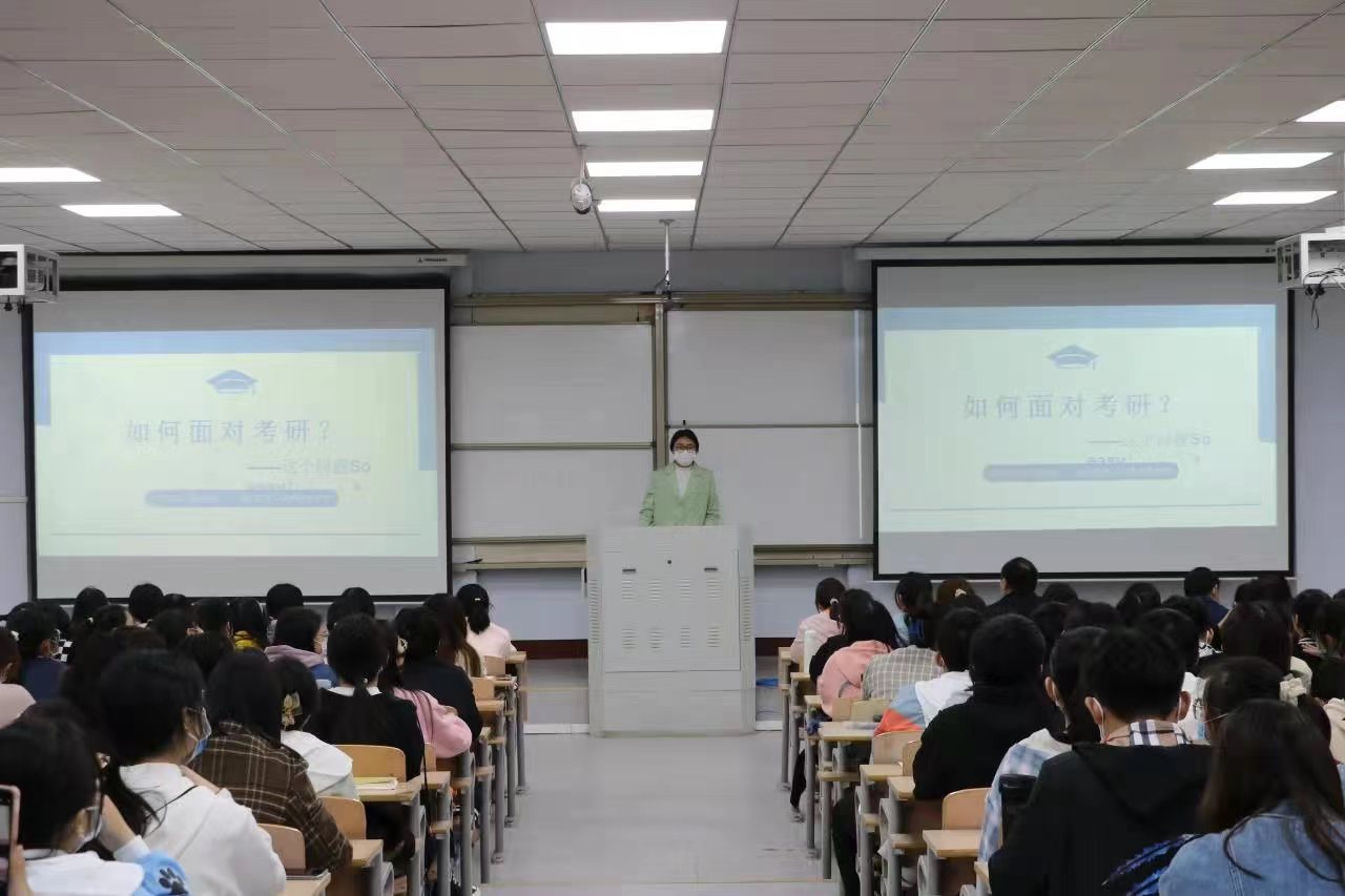 会议伊始,张斐然院长从就业形势和考研优势两方面强调了考研的重要性和必要性,从定好目标、选好学校两个方面详细解读了如何高效备考。2022届六位考研上岸的优秀学子依次结合自己的考研经历,从考研目标的确立、如何备考以及备考经验展开分享,对考研内容、报考学校与专业、复习计划、阶段安排、相关学校的考研情况和试题难度等方面进行详细介绍。在场的同学纷纷表示学长学姐们的倾囊相授让他们受益匪浅。