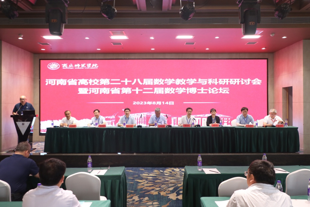8月14日上午,由河南省数学会主办,我校金年会jinnianhuicom承办的河南省高校第二十八届数学教学与科研研讨会暨河南省第十二届数学博士论坛隆重开幕。河南省数学会理事长、河南大学党委书记卢克平,河南省数学会副理事长、河南财政金融学院校长李学志,我校校长陈向炜,河南大学副书记冯淑霞,中原工学院副校长方建印,国家杰出青年科学基金获得者、中国科学院研究员郑伟英,上海财经大学数学学院教授徐定华以及来自省内外33所高校,数学界近200名专家学者参加会议。开幕式由河南省数学会副理事长兼秘书长薛波主持。