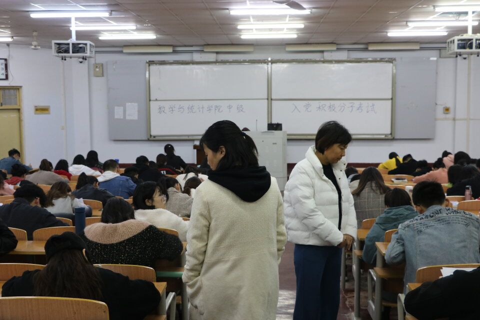 为筛选出优秀的,能为社会主义建设贡献力量且全心全意为人民做贡献的新类型人才,金年会jinnianhuicom于11月8日晚上七点在一号教学楼207教室举办了中级入党积极分子考试。为保证考试的公平公正,学生第一、二、三党支部书记姜素华,黄丽芝,张华及18级辅导员李琛对本次考试进行了监考。