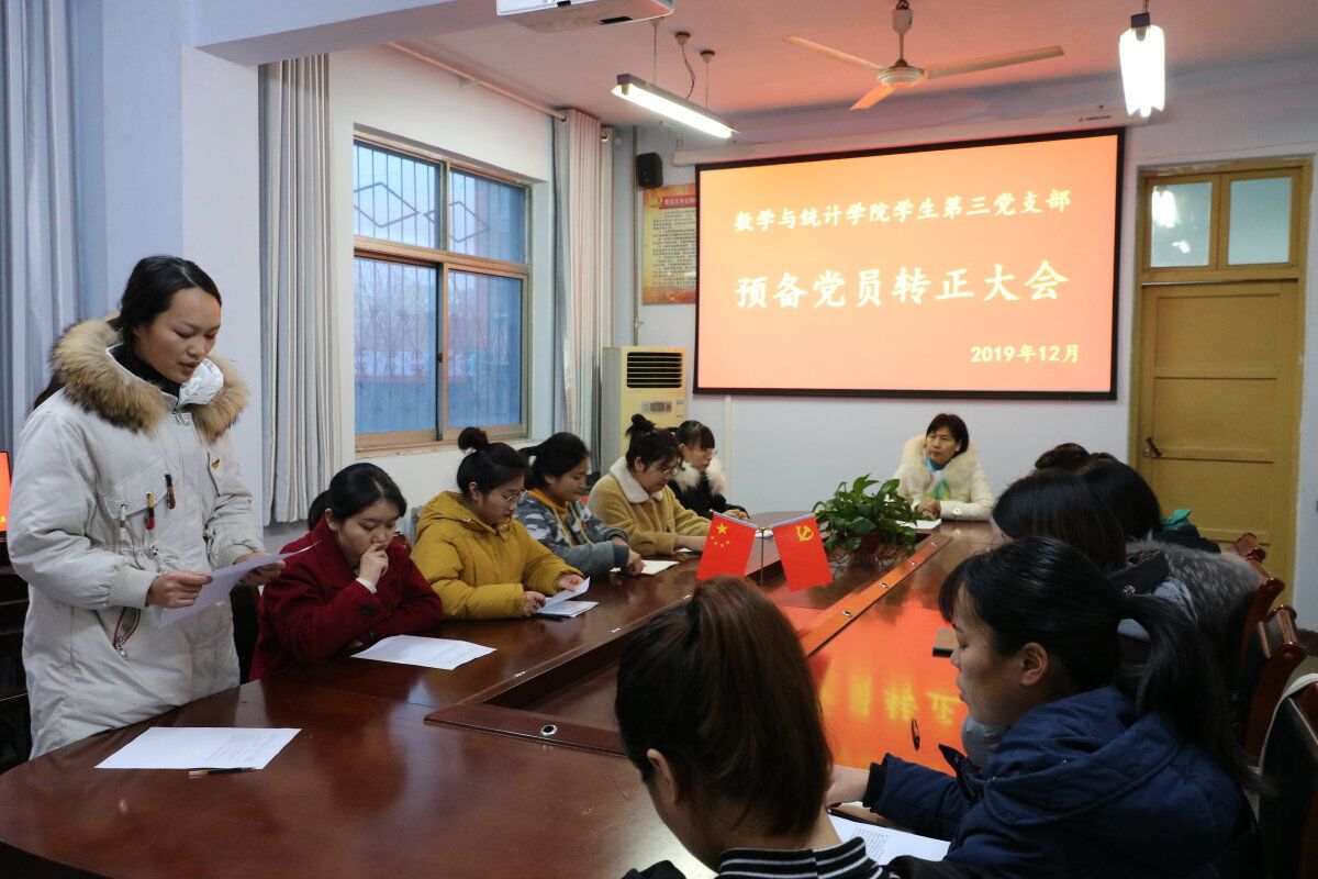 为增强学院支部党员队伍建设,充分发挥党的核心领导作用。金年会jinnianhuicom第三党支部转正大会于12月25日下午四点三十分在办公楼二楼会议室顺利召开,转正会议由学生第三党支部书记张华老师主持,学生第三党支部全体成员参与。