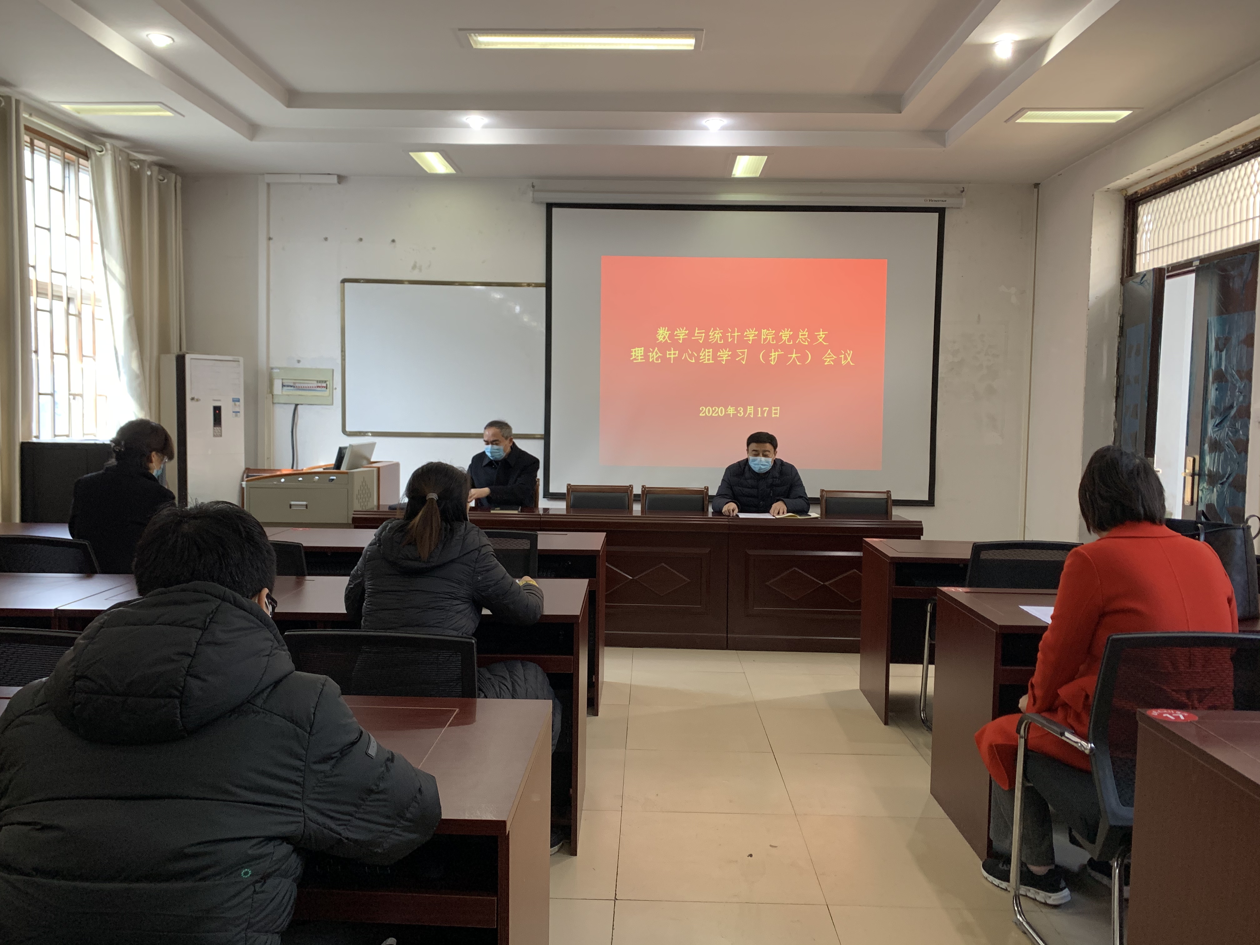2020年3月17日上午,金年会jinnianhuicom党总支召开了理论中心组学习(扩大)会议,学习习近平总书记给北京大学援鄂医疗队全体“90后”党员的回信和《商丘师范学院新冠肺炎疫情防控网格化管理实施意见》。会议由学院党总支书记陈东主持及领学,学院领导班子、全体辅导员参加了此次会议。