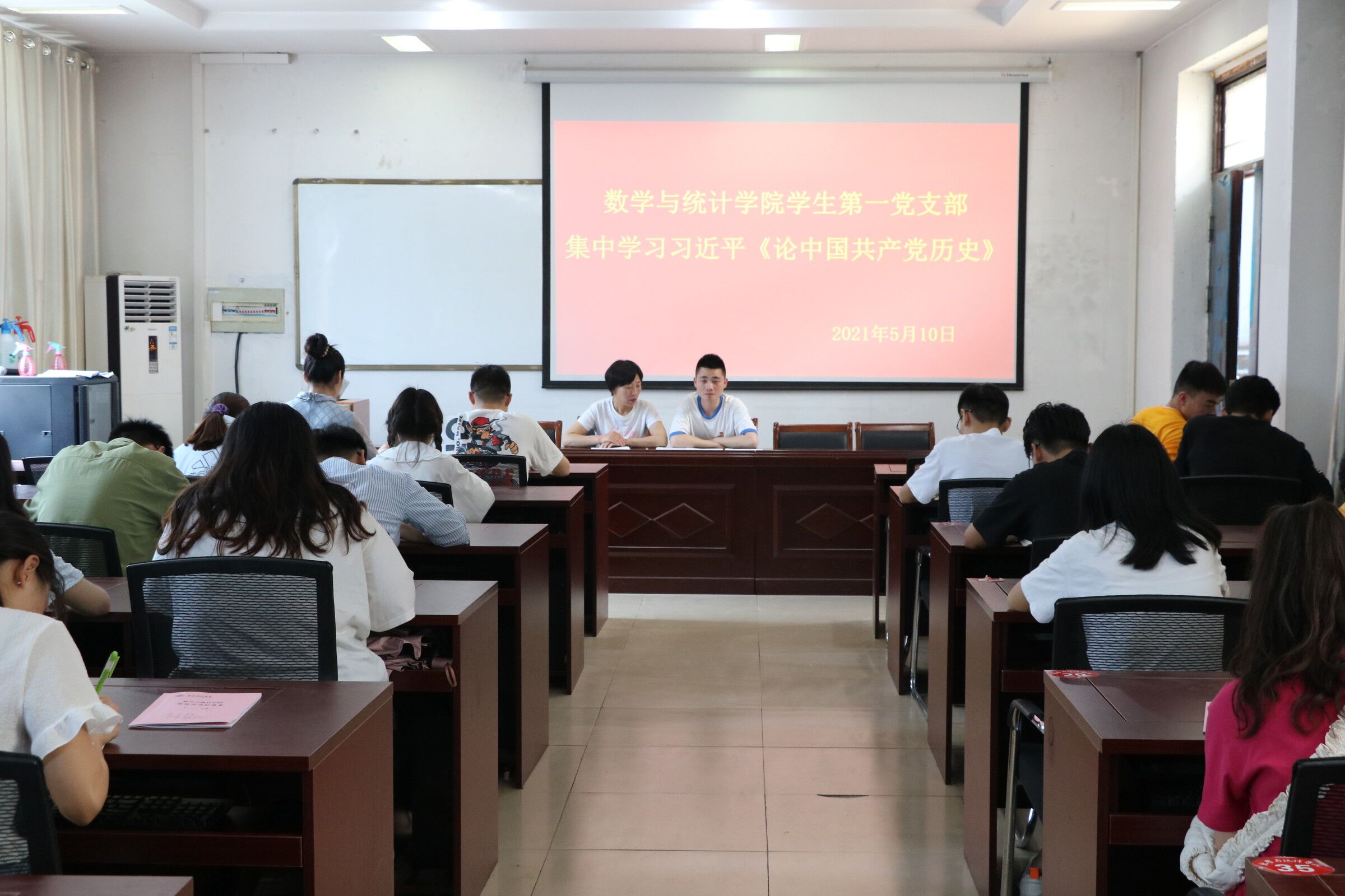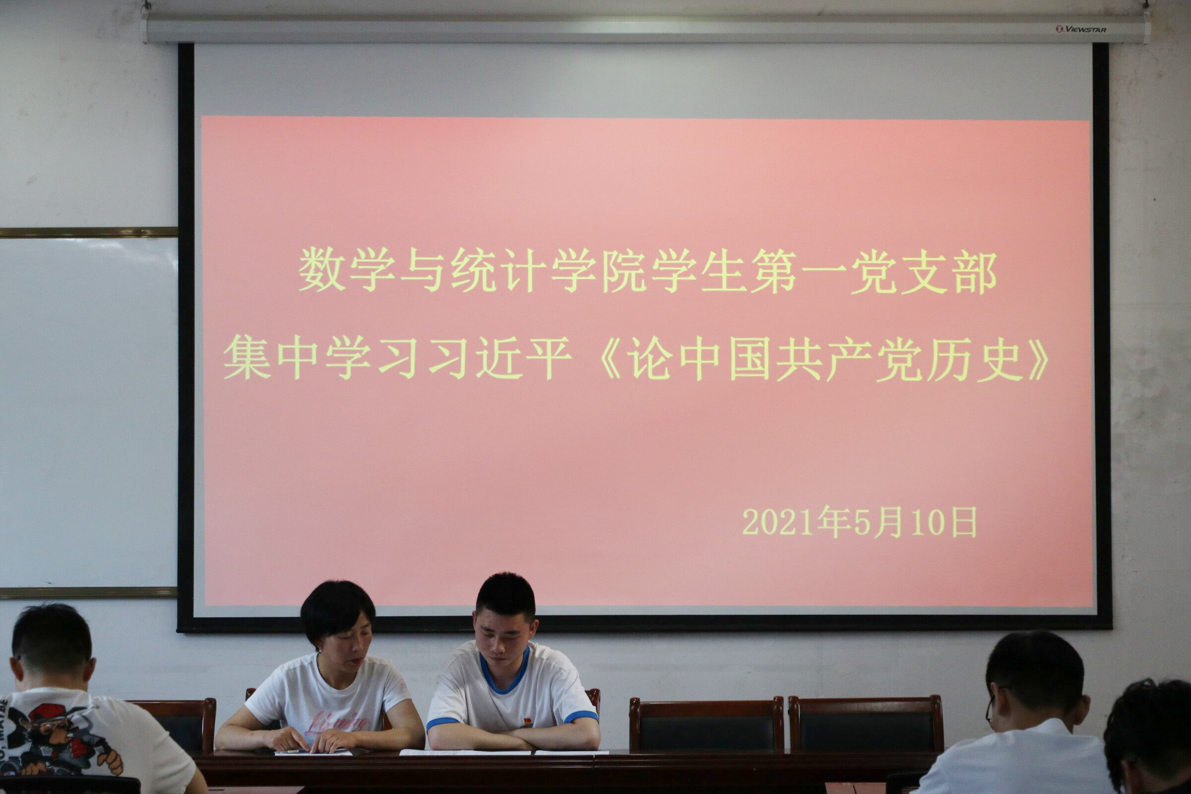 2021年5月10日十二点半金年会jinnianhuicom学生第一党支部在数学办公楼208开展了集中学习习近平《论中国共产党历史》的主题党日活动。本次活动由学生第一党支部书记姜素华主持,金年会jinnianhuicom学生第一党支部全体党员参加。