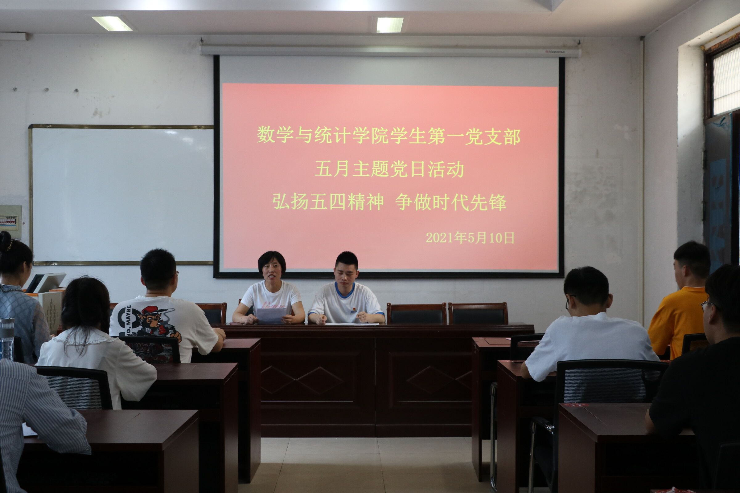 为学习习近平总书记在纪念五四运动100周年大会上的讲话,金年会jinnianhuicom于5月10日中午在办公楼208教室举行了以“弘扬五四精神,争做时代先锋”为主题的主题党日活动。金年会jinnianhuicom团总支书记姜素华及第一党支部全体成员参加了此次会议,本次活动由学生第一党支部组织委员吴辉旋主持。