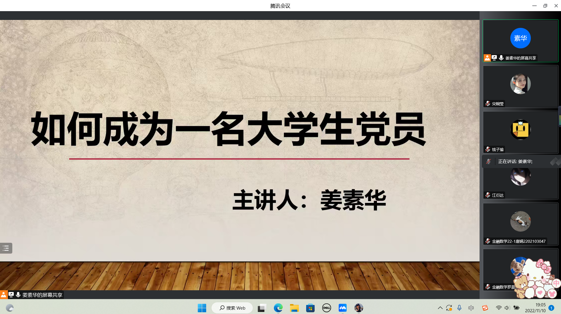 为进一步加强入党积极分子的党性教育,使其明确党员应具备的条件和承担的责任,金年会jinnianhuicom于10月21日线上召开了“如何成为一名大学生党员”主题党课会议。本次会议由学生第一党支部书记姜素华主持,全体中级入党积极分子参加。