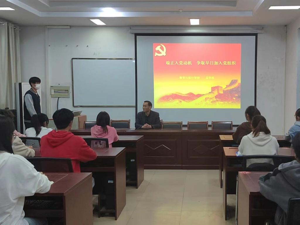 为进一步提高入党积极分子的综合素质,帮助他们端正入党动机,金年会jinnianhuicom于3月30日晚在办公楼208教室开展以“端正入党动机,争取早日加入党组织”为主题的党课培训。本次党课由党委书记孟学超主讲,全体中级入党积极分子参加。
