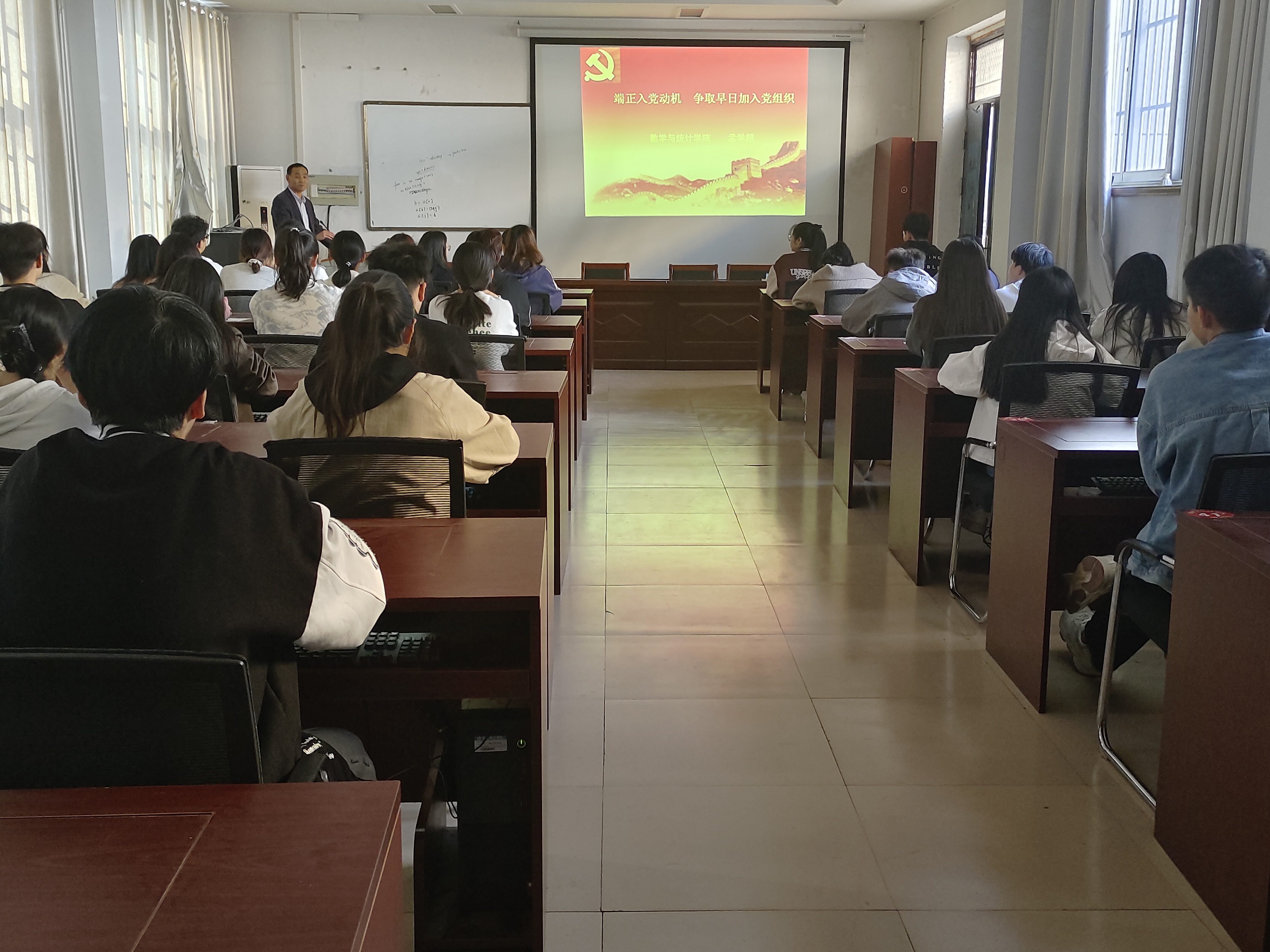 为进一步提高入党积极分子对党组织的了解和认识,加强入党积极分子的思想道德修养,争取早日加入党组织。金年会jinnianhuicom于10月20日下午在办公楼208教室开展了以“端正入党动机,争取早日加入党组织”为主题的党课培训。本次党课由党委书记孟学超主讲,全体中级入党积极分子参加。