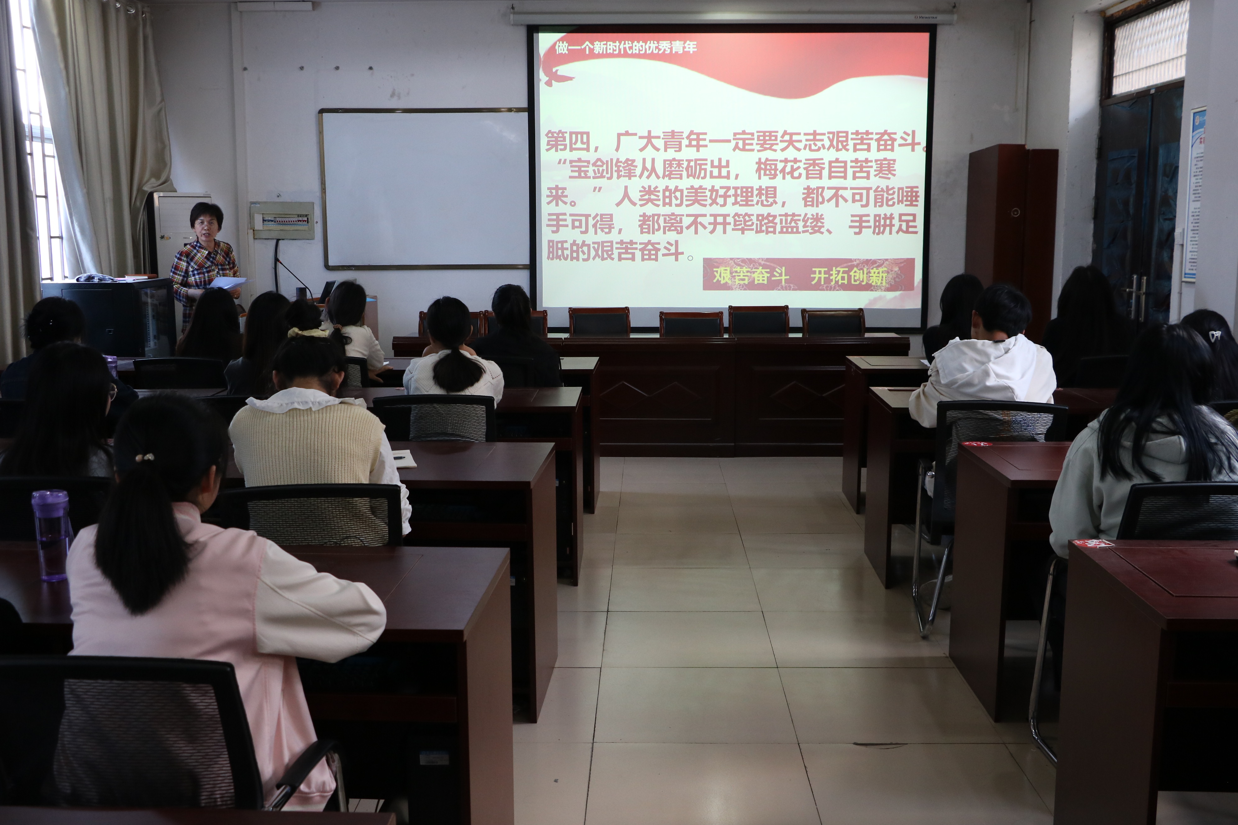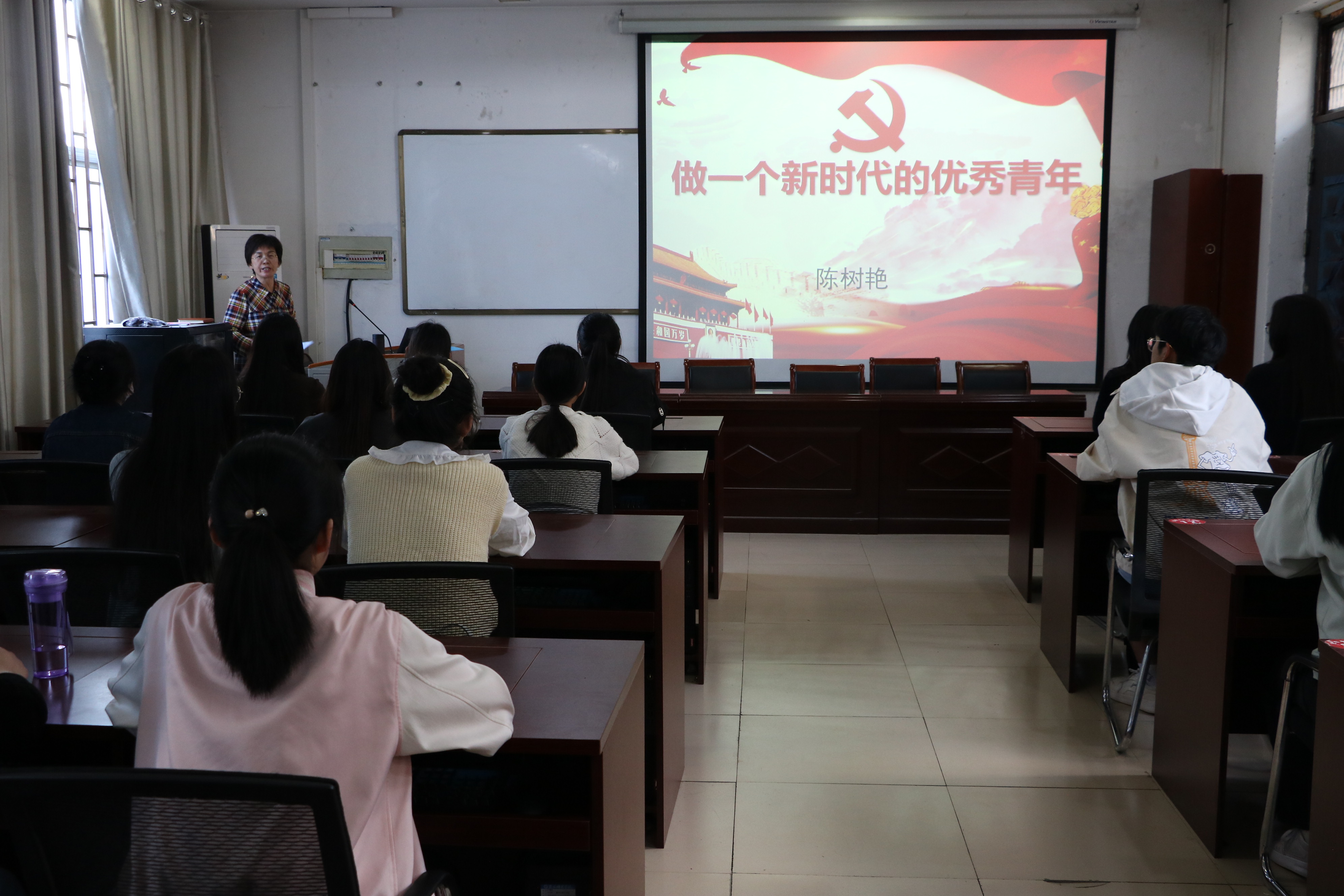为切实加强入党积极分子对新时代优秀青年的认识与理解,增强入党积极分子的综合素质,端正入党动机。金年会jinnianhuicom于4月12日在办公楼208教室开展了以“做一个新时代的优秀青年”为主题的党课培训。本次党课由金年会jinnianhuicom党委副书记陈树艳主讲,全体中级入党积极分子参加。