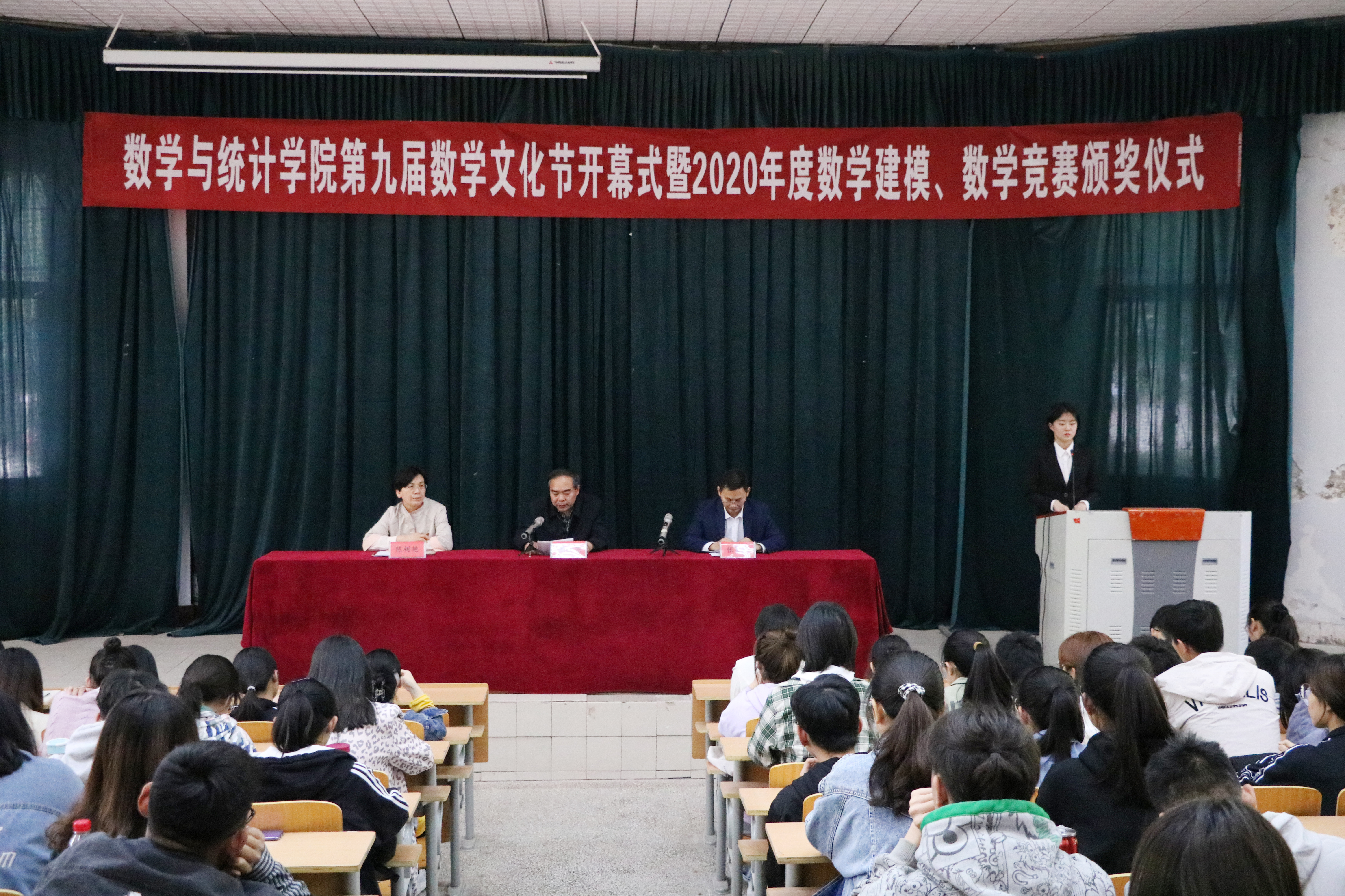 2021年4月19日,金年会jinnianhuicom第九届数学文化节开幕式暨2020年度数学建模、数学竞赛颁奖仪式在睢阳校区物理报告厅举行。学院院长梁洪亮、党总支副书记陈树艳、副院长张斐然和各年级辅导员参加了此次活动,开幕式由团总支副书记屈玥主持。