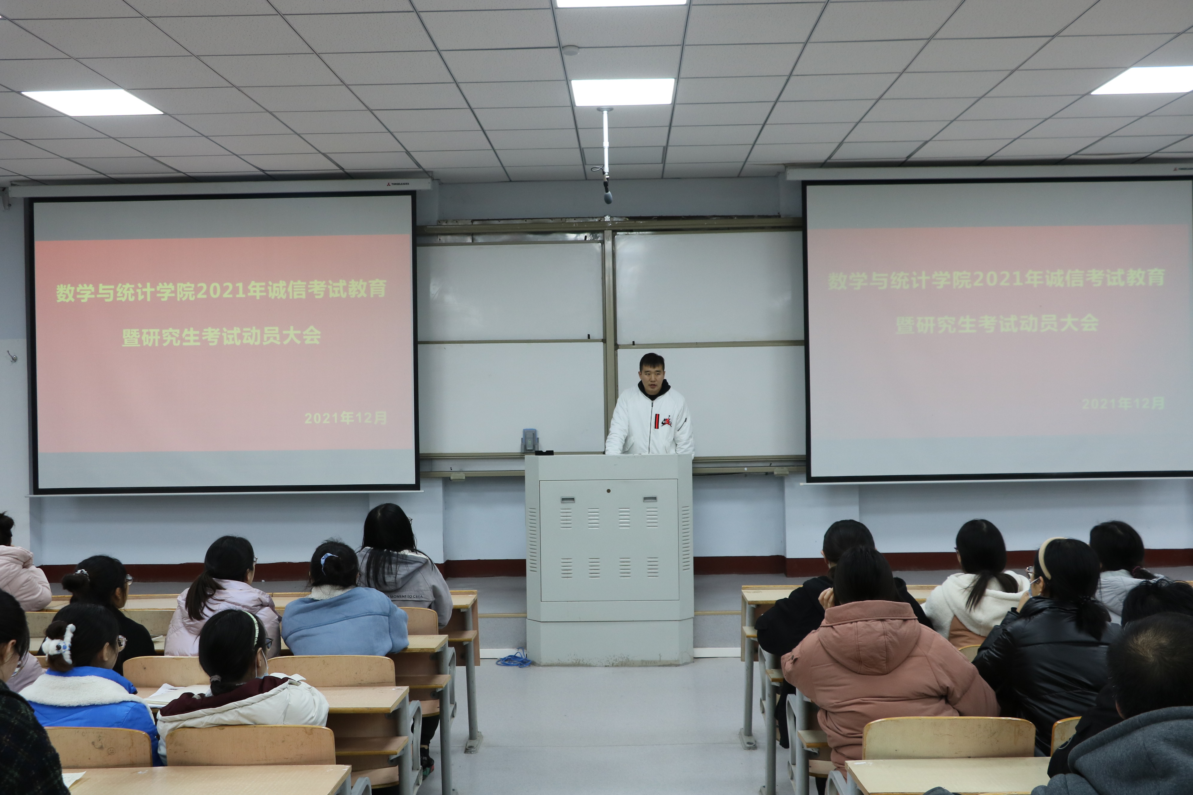 为号召参加研究生考试的同学诚信应考,增强考试信心和底气,提升考研士气,金年会jinnianhuicom于12月23日下午六点半在一号教学楼106教室开展了诚信考试教育暨研究生考试动员大会。本次会议由18级辅导员李昊阳老师主持,全体考研学生参加。