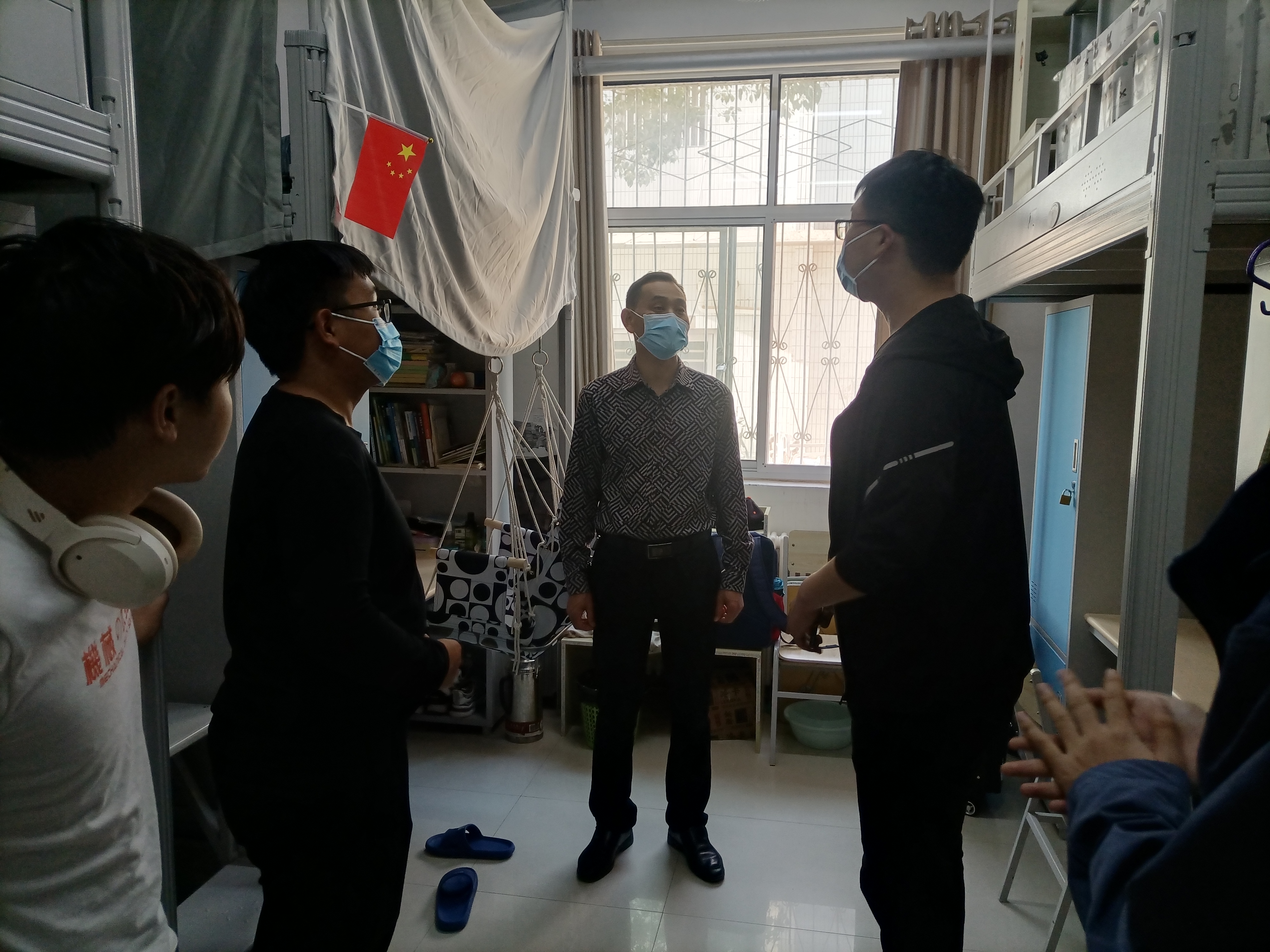 老师们走进各年级寝室,认真了解同学们在封校期间的学习和生活情况,听取同学们在此期间遇到的问题和困难,并让同学们对学院的管理措施提出相关意见和建议。接着,老师们指出,虽然现在疫情形势严峻,但同学们要努力调整好心态,积极适应封闭管理时期校内生活,保持良好的作息规律,多与辅导员、同学和家长保持沟通联系,在宿舍内,要加强寝室卫生清洁工作并做好通风,保持宿舍环境卫生。老师们强调,大学生要以学习为主要任务,不能因为疫情而中断学习的脚步,要及早设立考研目标并为之持之以恒去奋斗,大学四年要养成自律的好习惯。