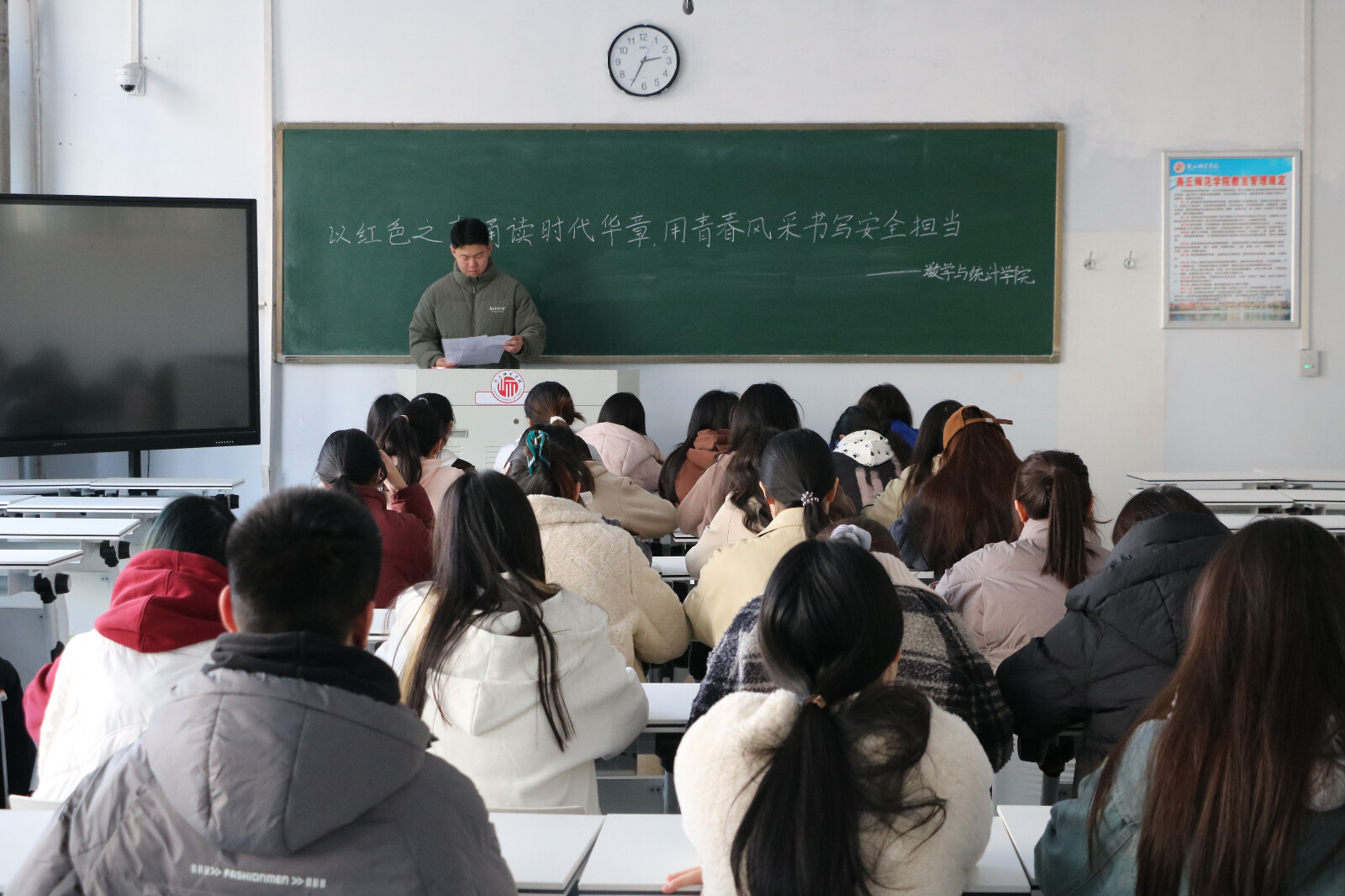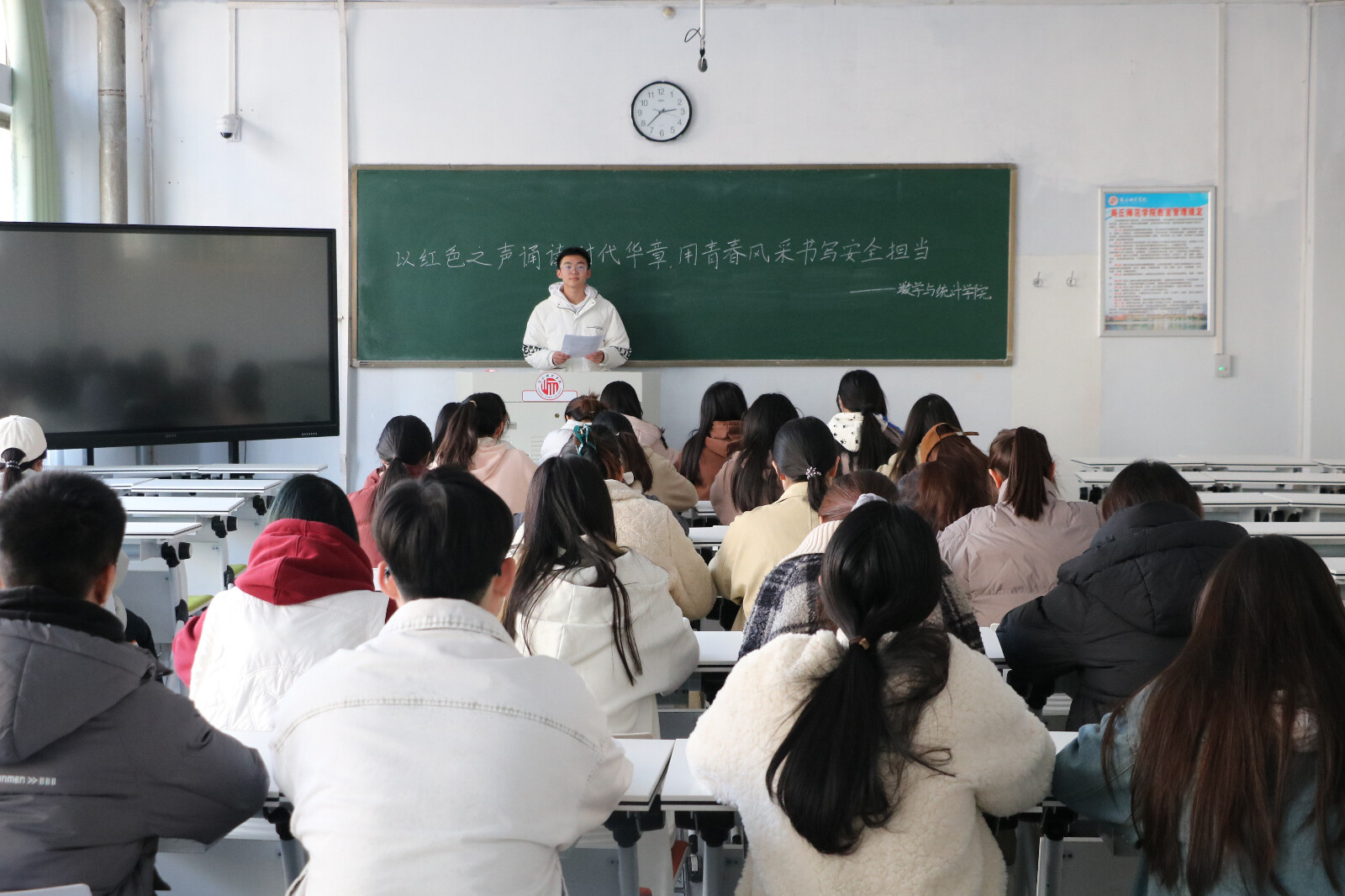 为强化政治引领,提升大学生的政治素养,结合学校“安全文明卫生月”活动内容,金年会jinnianhuicom于3月16日在睢阳校区一号教学楼108教室举办了以“以红色之声诵读时代华章,用青春风采书写安全担当”为主题的红色朗诵活动。本次活动由学生会程致远主持,金年会jinnianhuicom学生代表参加。