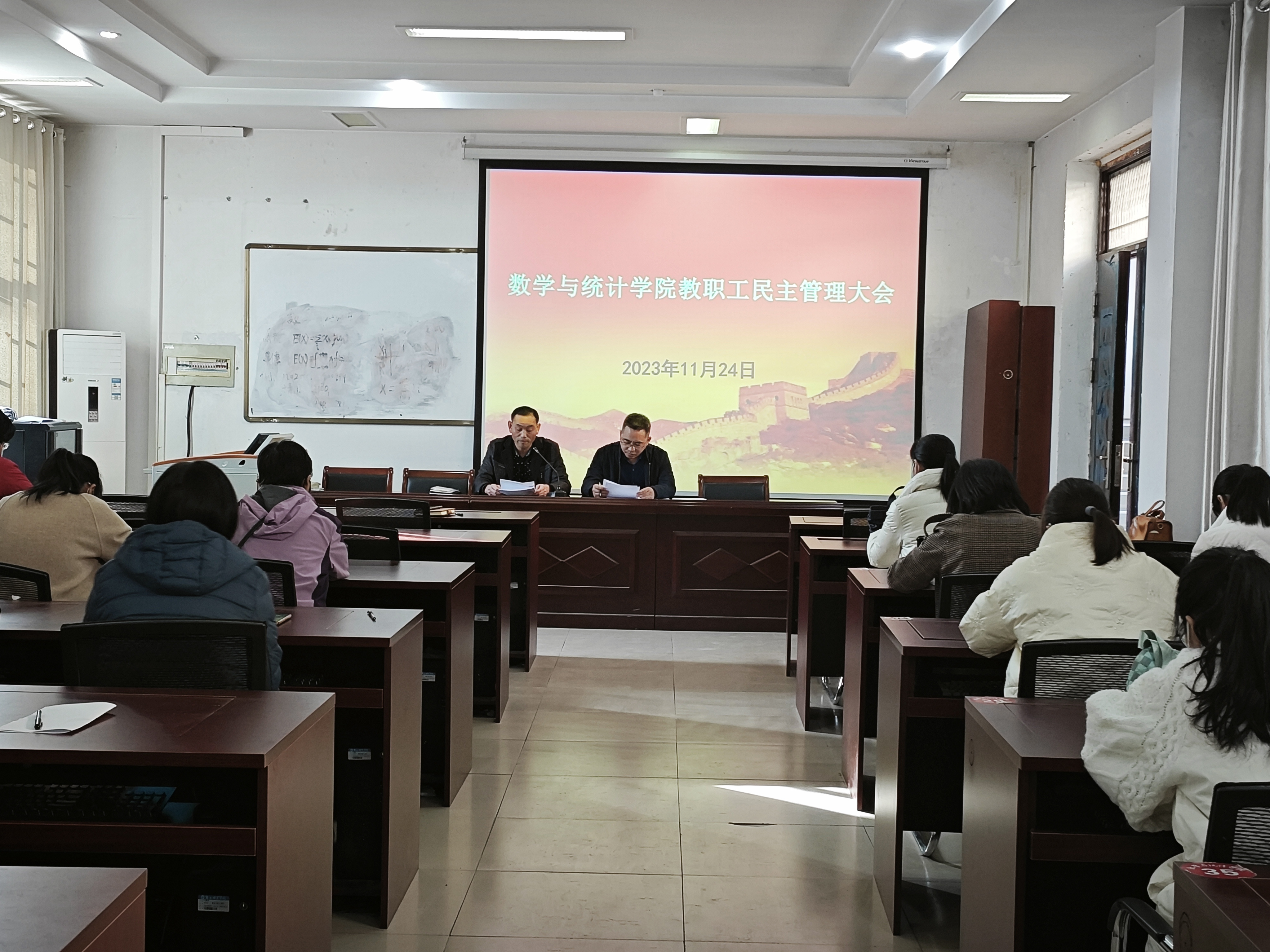为进一步加强民主政治建设,不断调动教职工参与民主决策、民主管理和民主监督的积极性,11月24日下午,金年会jinnianhuicom在数学楼208会议室召开了教职工民主管理大会。学院全体教职工参加了会议,会议由学院党委书记兼工会主席孟学超主持。