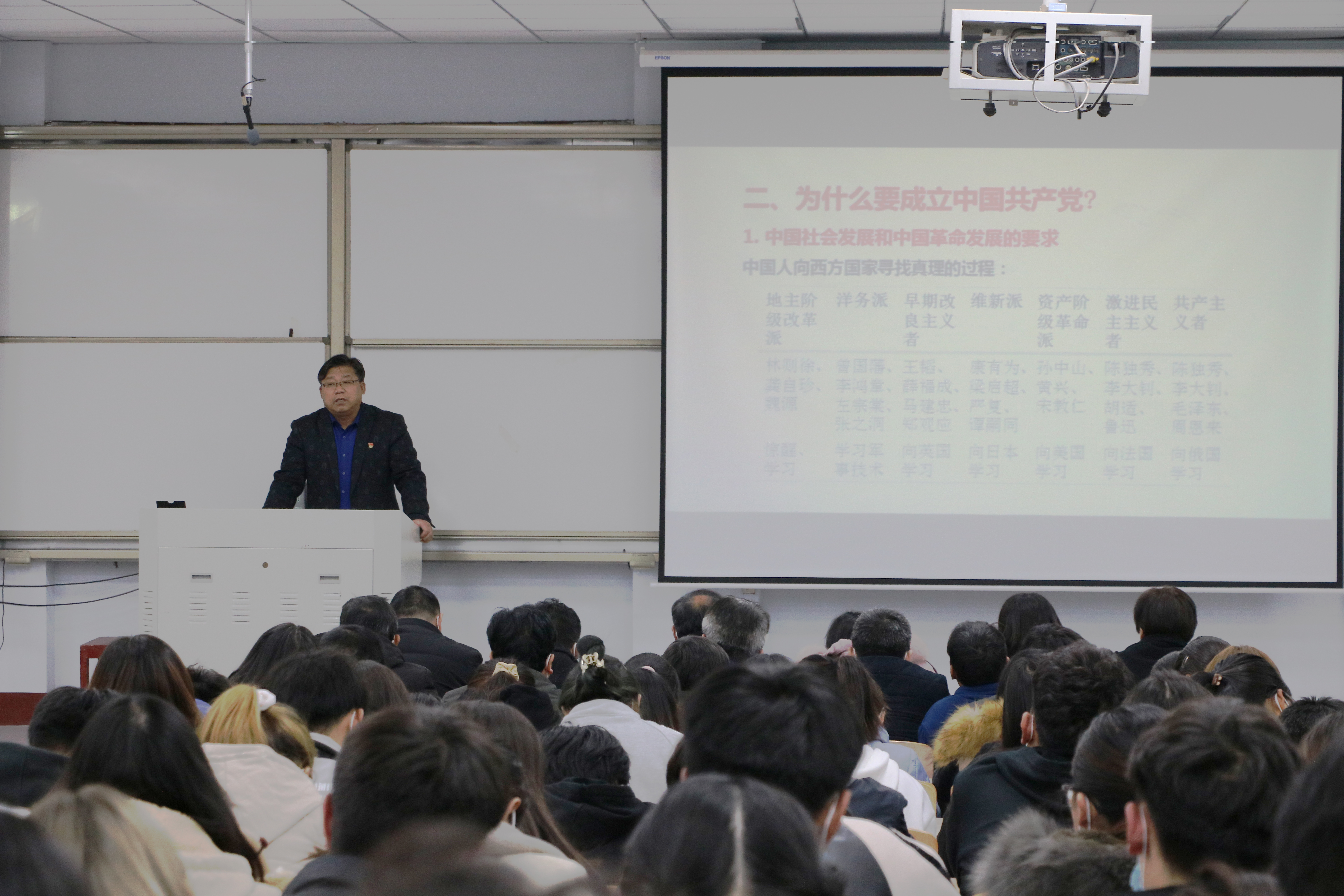 为庆祝建党一百周年,加深金年会jinnianhuicom全体师生员工对党的认识,增强做好党史学习教育的自觉性。2021年3月8日晚,金年会jinnianhuicom邀请法学院副院长李东坡教授在1号楼208教室为全体教职工和200余名学生代表做“学党史,跟党走”庆祝建党一百周年党史学习教育专题讲座,讲座由党总支书记陈东主持。