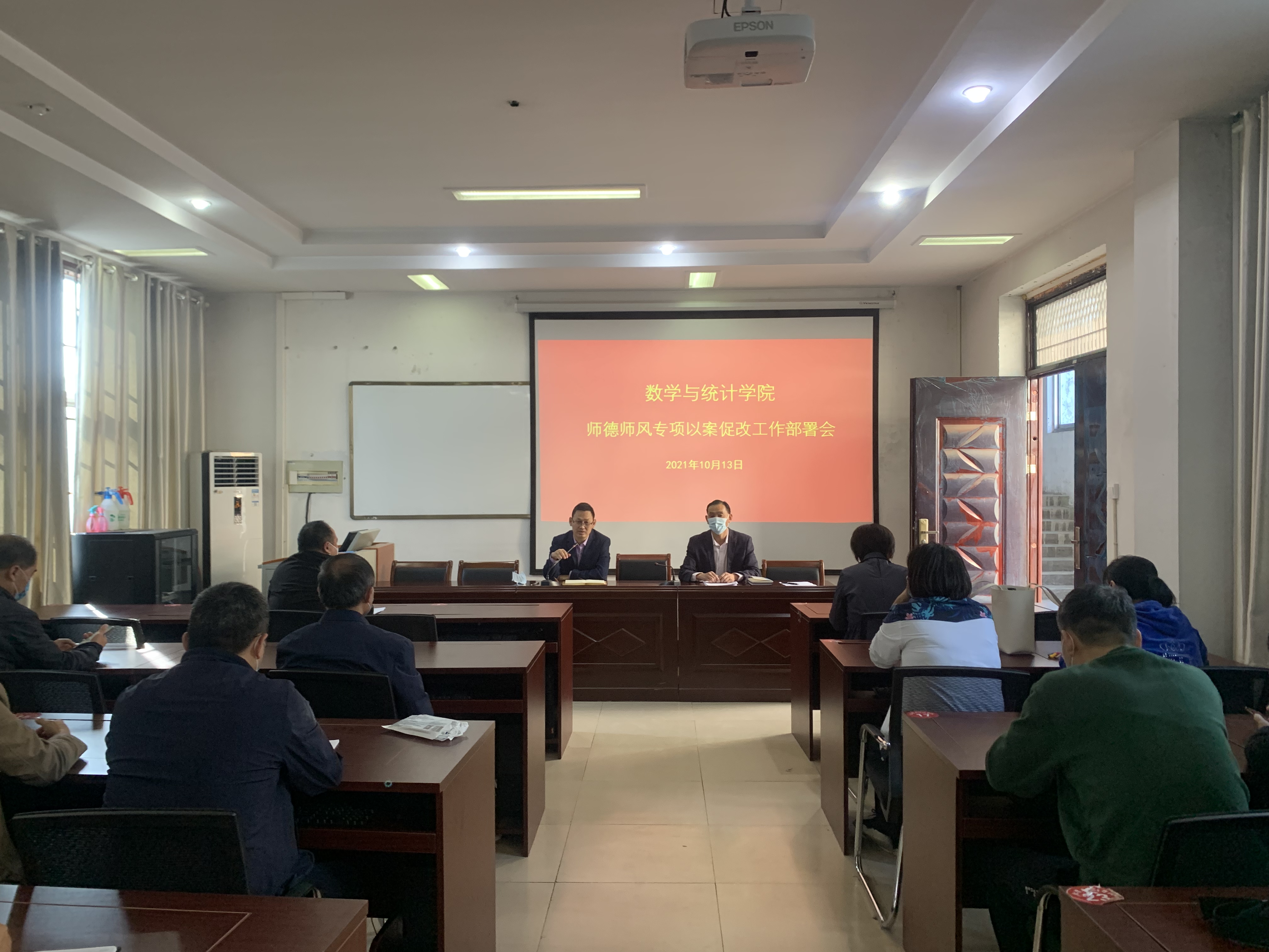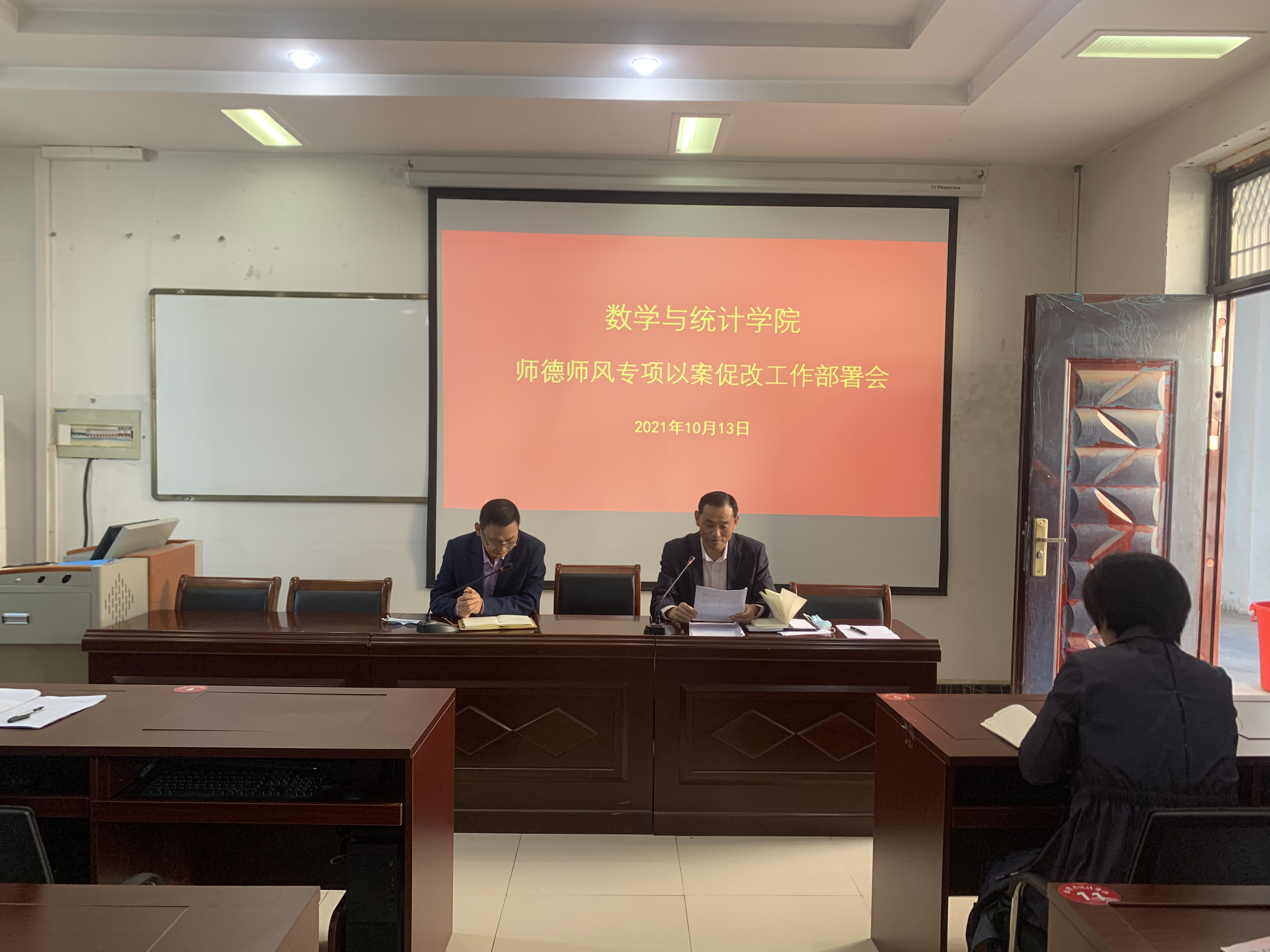 为全面加强师德师风建设,引导广大教师以德立身、以德立学、以德施教、以德立德,2021年10月13日,金年会jinnianhuicom召开师德师风专项以案促改工作部署会,学院领导班子、全体教职工在数学楼二楼会议室参加了此次会议,会议由院长张斐然主持。