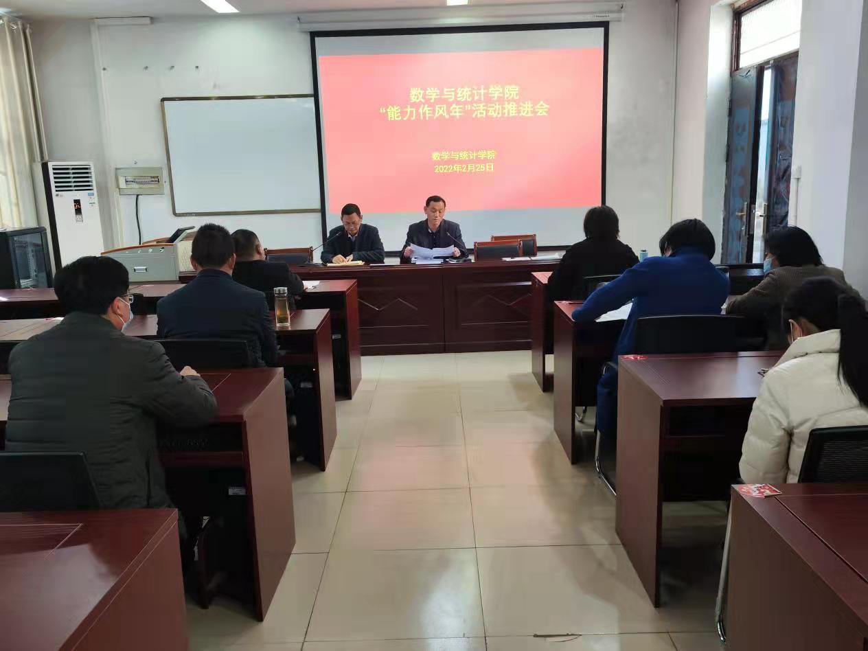 2022年2月25日,金年会jinnianhuicom在数学楼208会议室召开了“能力作风建设年”活动工作推进会,学院领导班子、全体教职工参加了此次会议,会议由党委副书记、院长张斐然主持。