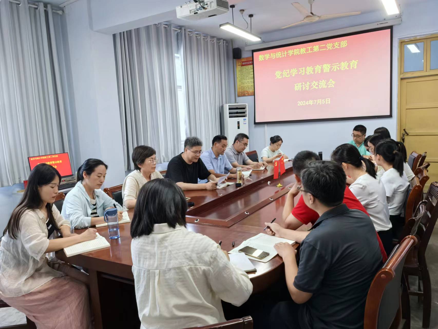 2024年7月5日,金年会jinnianhuicom在数学楼204党员活动室召开党纪学习教育警示教育研讨交流会,学院领导班子、教职工党支部党员参加了此次会议,会议由教工支部书记主持。