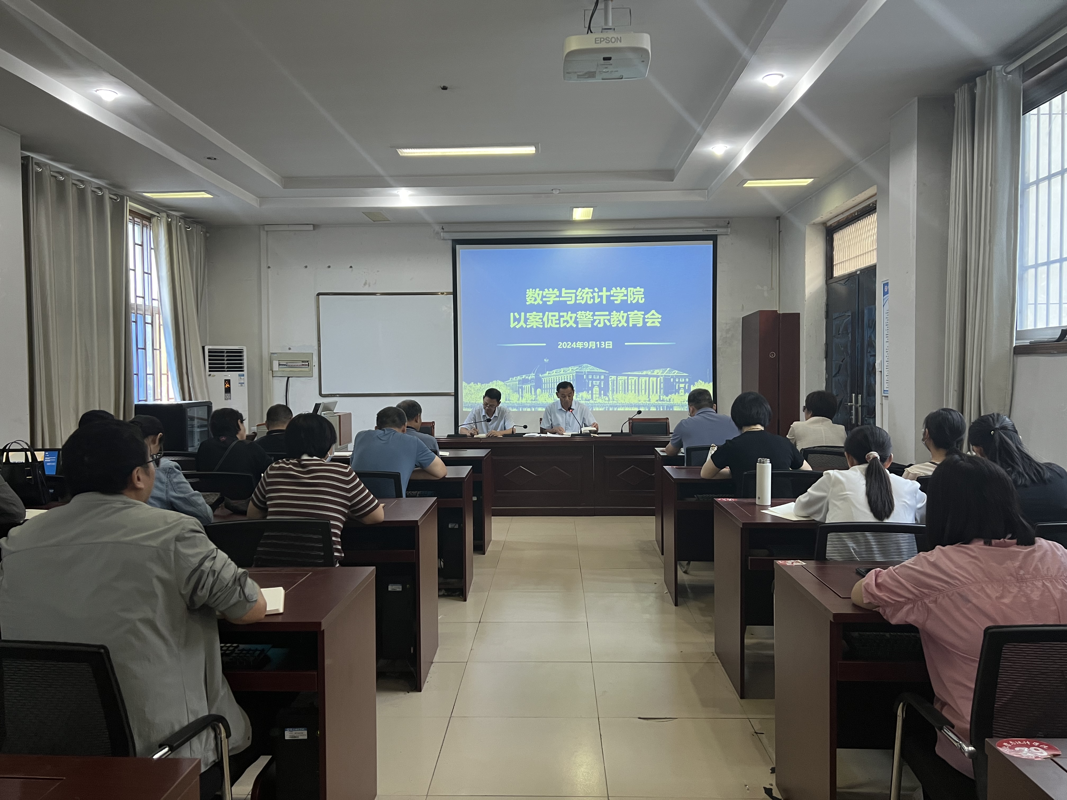 2024年9月13日,金年会jinnianhuicom在数学楼208会议室召开以案促改警示教育大会,学院领导班子、全体教职工参加了此次会议,会议由学院党委书记孟学超主持。