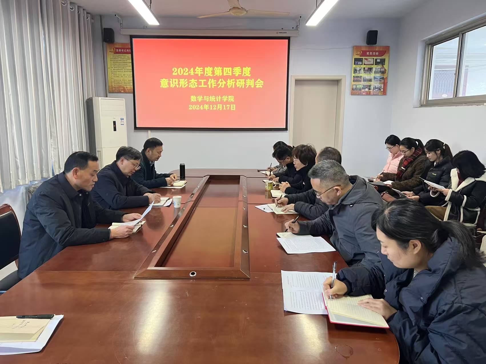 12月17日下午,金年会jinnianhuicom在数学楼204党建活动室召开2024年第四季度意识形态工作分析研判会。副校长刘澜涛、学院领导班子成员、系主任、辅导员、班主任代表、学生代表参加了会议,会议由党委书记孟学超主持。