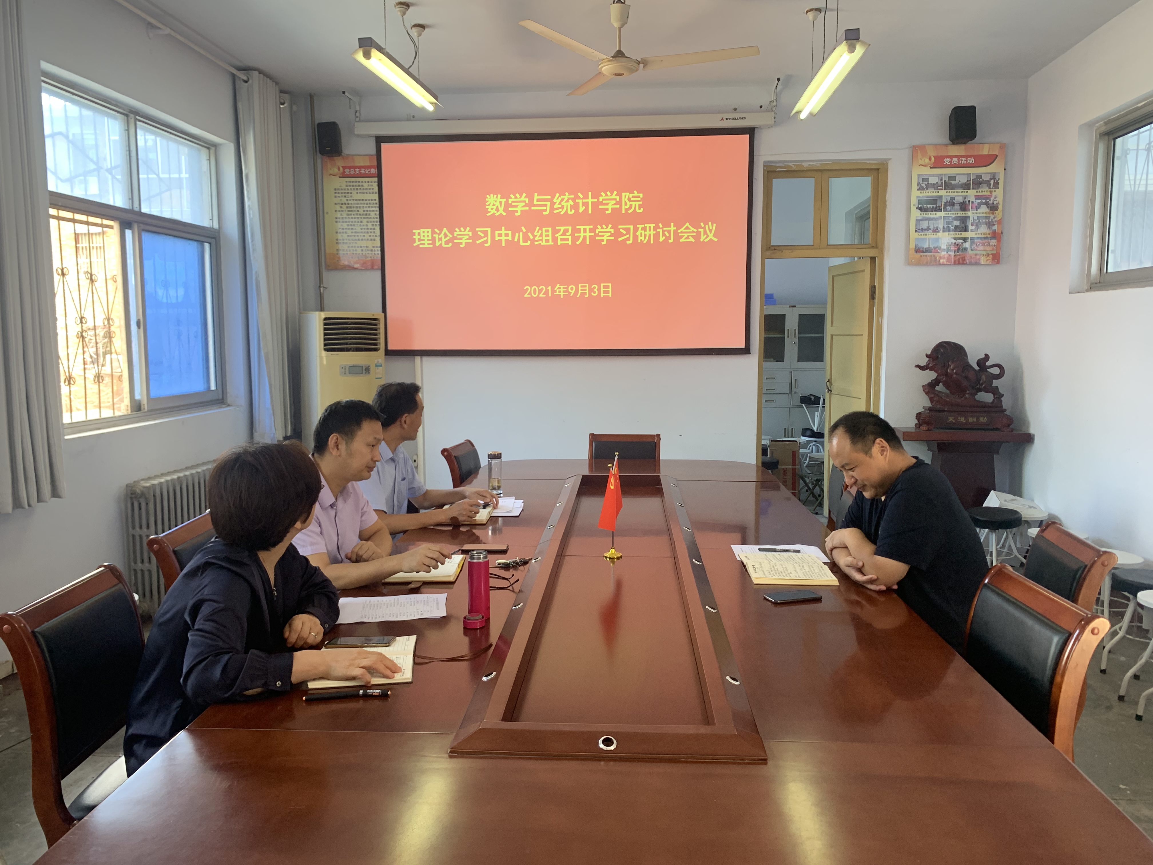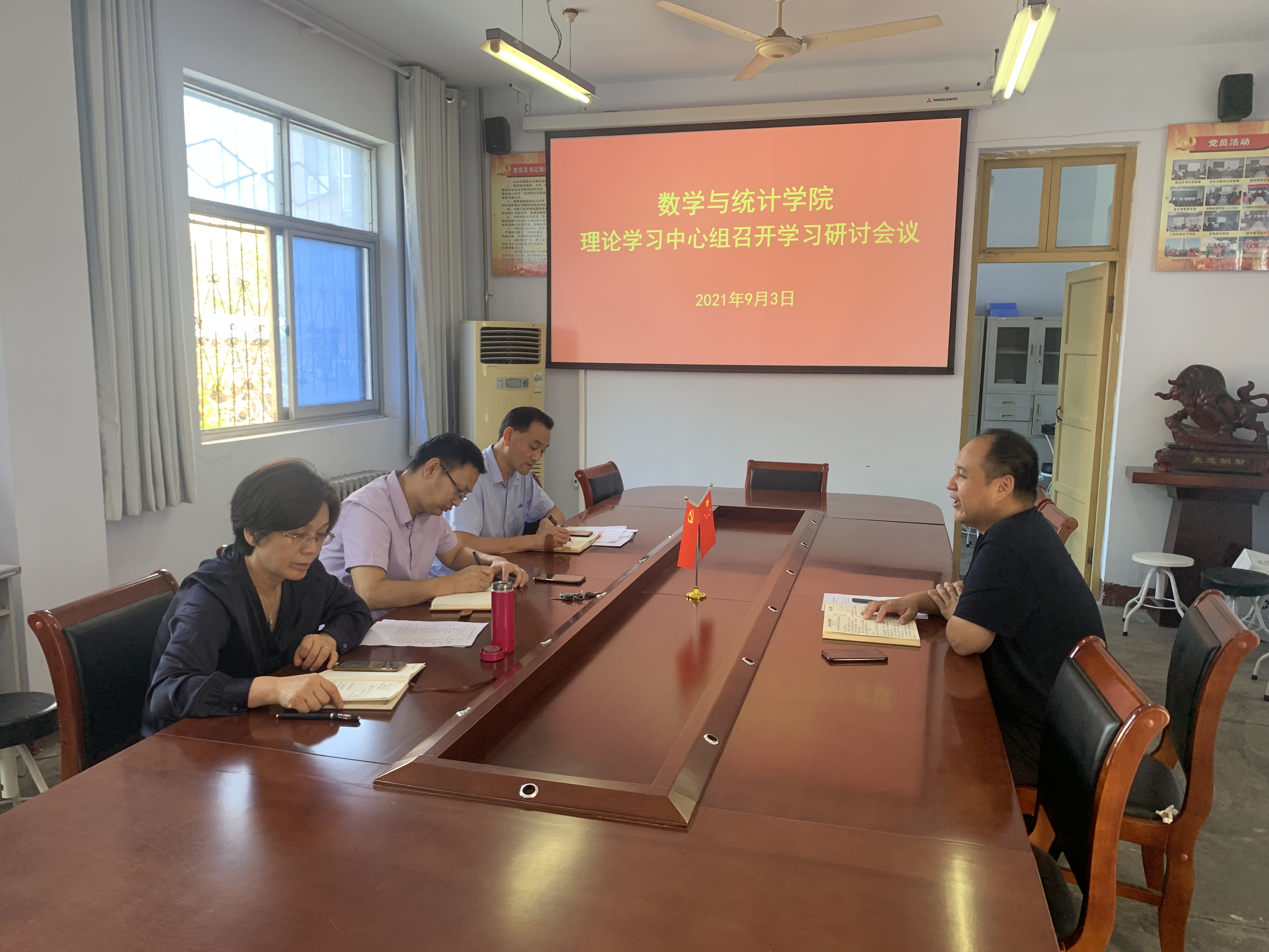 2021年9月3日,金年会jinnianhuicom党委在数学楼党员活动室召开了理论学习中心组学习研讨会,会议由学院党委书记孟学超主持,学院领导班子参加了此次会议。