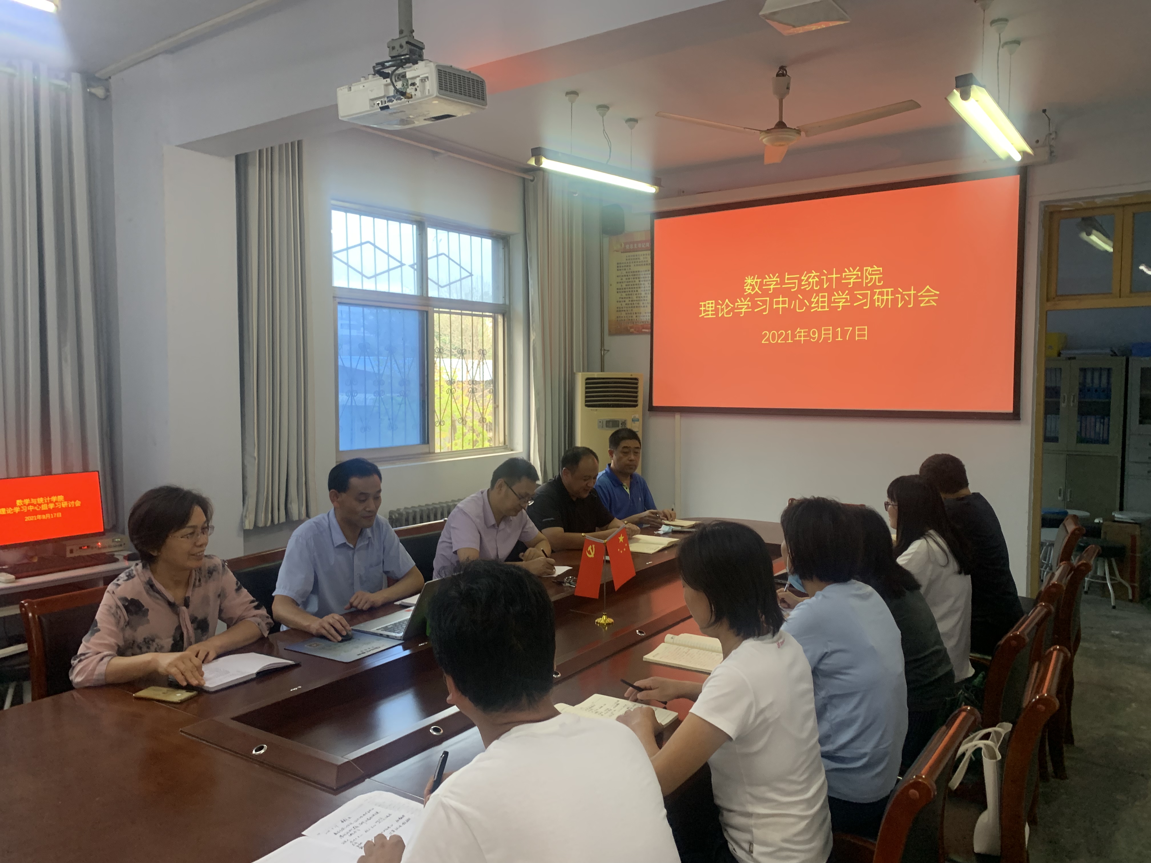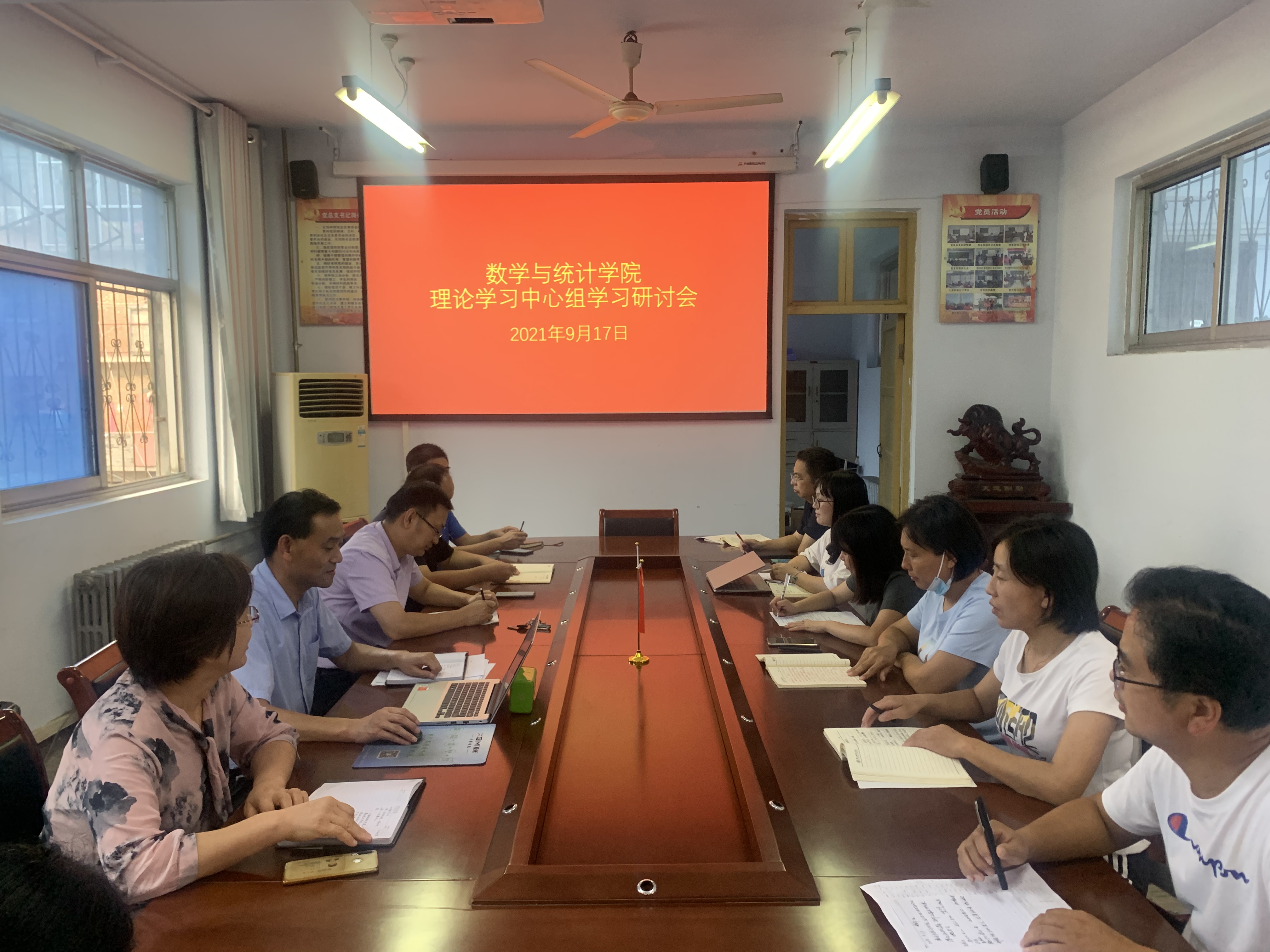 2021年9月17日,金年会jinnianhuicom党委在数学楼党员活动室召开了理论学习中心组学习研讨扩大会议,学院领导班子、全体行政人员参加了此次会议,会议由学院党委书记孟学超主持。