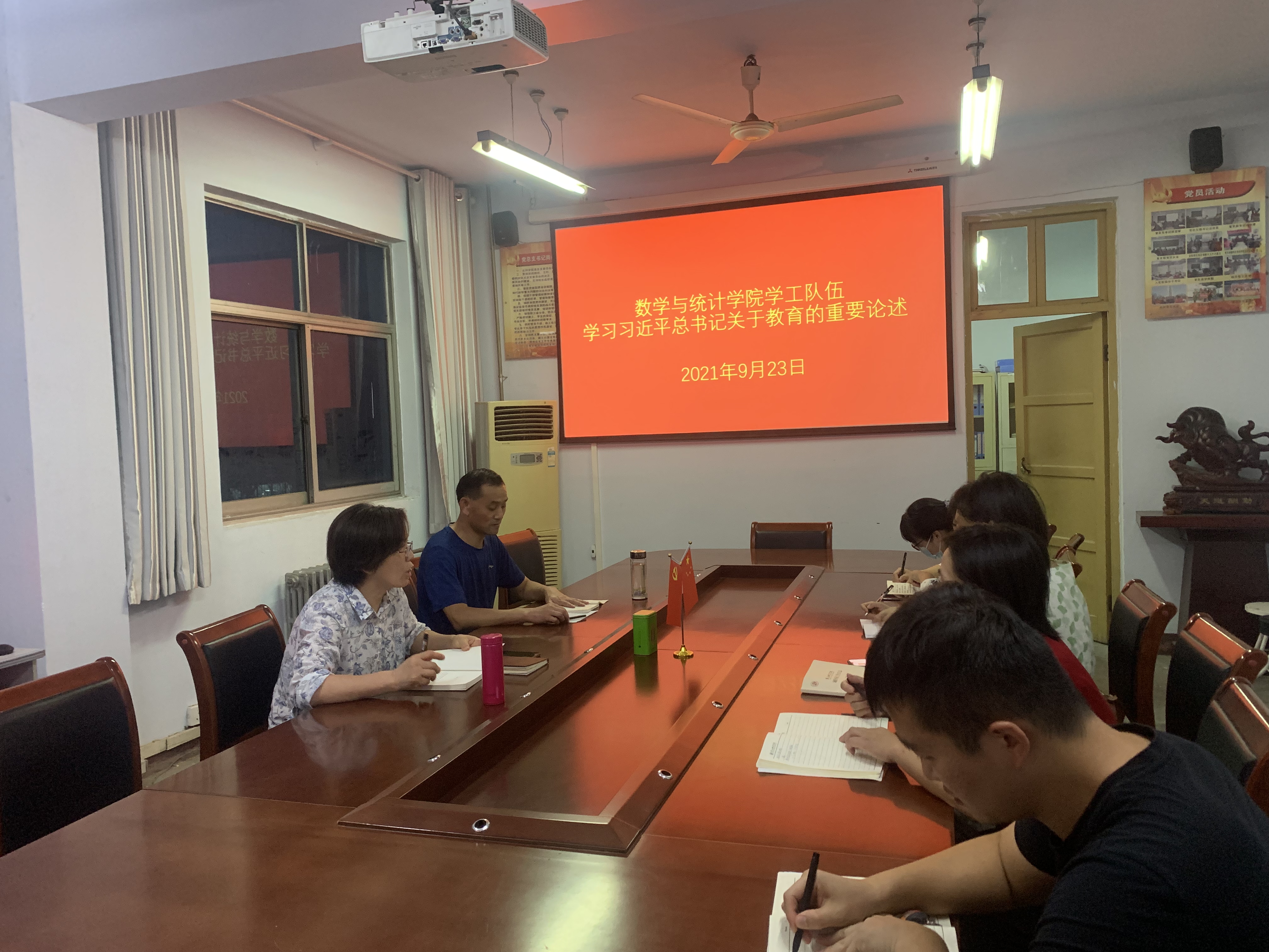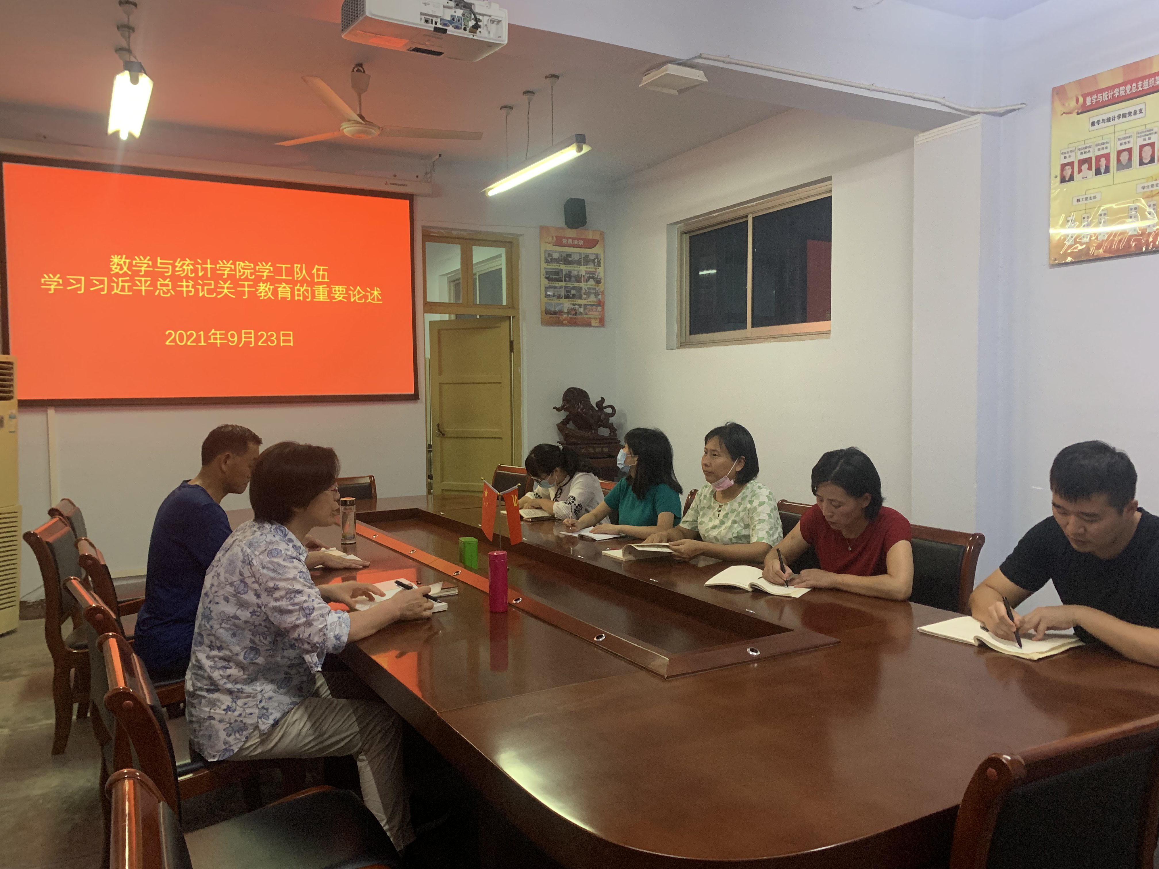 为深入学习习近平总书记关于教育的重要论述,9月23日下午,金年会jinnianhuicom学工队伍开展学习习近平总书记关于教育的重要论述专题研讨会,学院党委书记孟学超、副书记陈树艳和全体辅导员参加了此次研讨会。